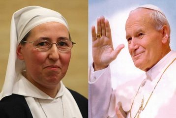 M. Marija Simona Pjēra: Es nezinu kāpēc. Mūsu kongregācijas uzdevums ir kalpot dzīvībai un ģimenēm. Pāvests Jānis Pāvils II vienmēr aizstāvēja dzīvības svētumu un sludināja to katrā pasaules malā. Arī mēs kalpojam dzīvībai, ģimenei, dzimstošajiem bērniem, dzīvībai no ieņemšanas brīža, katrai dzīvībai. Bez tam, mani piemeklēja tā pati slimība, ar ko slimoja arī Jānis Pāvils II – Parkinsona slimība.
