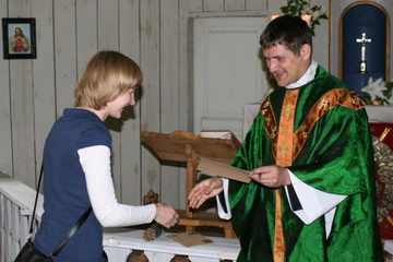 No septembra Rīgas svētā Jēkaba katedrāles jaunieši un arī tie, kas sirdī jauni, ik ceturtdienu varēja apmeklēt pr. Ilmāra Tolstova vadītās Katoliskās Baznīcas katehisma studijas, lai uzzinātu vairāk par Dievu un dažādām Katoliskās Baznīcas pamatpatiesībām. Katehisma studijām noslēdzoties, 18. jūnijā tika svinēta Sv. Mise Brīvdabas muzeja Latgales sētā Eleonorviles kapelā. Pēc Mises tika izsniegti sertifikati, kas ļauj "sludināt Baznīcas mācību līdz pat zemes robežam". Kaut arī sertifikatus saņēma 11 cilvēki, kopumā bija apmēram 90 katehisma studētāju, kas bija atnākuši vismaz vienu reizi. Slavēšanas noskaņās turpinājās arī dienas saviesīgā daļa, kur ikviens varēja dalīties atziņās un sajūtās, kuras iegūtas šī gada laikā. Par to kāpēc ir vērts lasīt katehismu un ko no tā var iegūt, atklāj studiju dalībniece Anna: „Es nostiprināju zināšanas par katoliskās Baznīcas mācību, atklājot, ka tā ir ļoti vienota un kristocentriska. Domāju, ka šīs lekcijas mani nedaudz vairāk "aizdedzināja" par Kristu. Katehismu ir vērts lasīt, lai spētu atbildēt gan sev, gan citiem uz aktuāliem jautājumiem, kas parādās, vērīgāk paraugoties uz ikdienā apkārt notiekošo. Uzskatu, ka mūsdienās kristietis nevar ilgstoši izdzīvot, ja nedod ticības barību arī savam prātam." Kaut arī Katoliskās Baznīcas katehisms nav viegla lasāmviela un ne vienmēr bija vienkārši saprast tur rakstīto, studētāji sapratuši, ka tas nav domāts vienīgi priesteriem. Mēs katrs esam aicināts lasīt katehismu, lai vairāk saprastu Baznīcas struktūru un patiesības, kā arī tuvotos Dievam. Foto: Guna Sterinoviča |