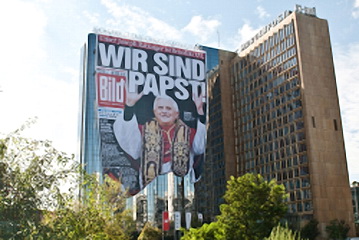 Vācijā populārākā laikraksta Das Bild redakcijas fasādi klāj pasaulē lielākais plakāts ar pāvestu un visai mīklaino uzrakstu „Wir sind Papst” (Mēs esam pāvests). Tas redzams pat no lidmašīnas. Caurmērā avīzes veidotāji pret Svēto tēvu ir noskaņoti pozitīvi. 21. septembra numurā vesela lapa ar nosaukumu „Visa Berlīne raugās uz pāvestu” ir veltīta tieši viņa vizītei. Laikraksts sniedz gan ceļojuma pa Vāciju programmu, gan arī norāda uz iespējamo protestu no dažu parlamentāriešu puses. Viens raksts izceļ Svētā tēva vizītes moto: „Kur ir Dievs, tur ir nākotne”. Kopumā viņa vadītajos dievkalpojumos varētu piedalīties vairāk nekā 260 tk. ticīgo – norāda Das Bild.