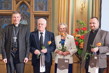 Pasākumā piedalījās valsts un baznīcas prominences. Īpašu atzinību guvuši kopumā 12 brīvprātīgie no dažādiem Latvijas reģioniem un balvas tiem pasniedza mecenāte Ināra Tetereva, arhibīskaps Zgibņevs Stankevičs, vēstniece Aija Odiņa un EK pārstāvniecības Latvijā vadītāja Inna Šteinbuka. Starp vienīgiem apbalvotiem no Baznīcas puses bija Saldus Romas katoļu draudzes zupas virtuves sagādnieki Jānis un Natālija Milzere un draudzes prāvests Andrejs Mediņš. Balvu pasniedza Viņa Ekselence arhibīskaps - metropolīts Zbigņevs Stankevičs. Irēna Brinteniece Foto: Raitis Rudovičs |