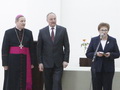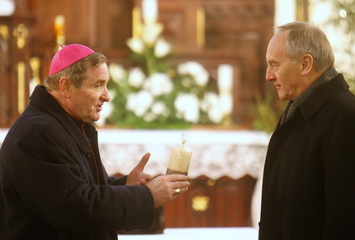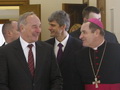 Pēc sarunas ar Rēzeknes pilsētas domes pārstāvjiem Valsts prezidents tikās ar Rēzeknes-Aglonas diecēzes bīskapu Jāni Buli, apmeklēja Rēzeknes katoļu vidusskolu, kā arī Rēzeknes katedrāli. Bīskaps Bulis izteica pateicību Valsts prezidentam Andrim Bērziņam par Rēzeknes-Aglonas diecēzes apmeklējumu, uzsverot, ka visi Latvijas Republikas prezidenti, ieskaitot pirmo Latvijas valsts prezidentu Jāni Čaksti, ir apmeklējuši Rēzeknes katedrāli. Sarunā ar Valsts prezidentu bīskaps Bulis īpaši akcentēja šobrīd sabiedrībā aktuālos jautājumus, uzsverot, ka arī Romas katoļu baznīca Latvijā ir satraukta par gaidāmo valsts valodas referendumu, jo šis jautājums skar gan ticīgos, gan neticīgos Latvijas iedzīvotājus. Bīskaps Bulis uzsvēra, ka Romas katoļu baznīca Latvijā vēlas aizstāvēt latviešu valodu. Baznīca atbalsta visas tautības, taču nevar piekrist ierosinājumam grozīt Latvijas Republikas Satversmi. Baznīca aicina cilvēkus doties uz referendumu un balsot pret grozījumiem Satversmē. Arī Valsts prezidents bija vienisprātis ar bīskapu, ka šobrīd ir svarīgi aicināt cittautiešus izprast latviešu bažas un satraukumu par gaidāmo referendumu. Vēl abas amatpersonas apsprieda demogrāfijas problēmas Latvijā, kas iztukšo Latgales laukus un pilsētas. Rēzeknes katedrālē Valsts prezidents par godu Sveču dienai dāvanā saņēma baznīcā svētītu sveci. Vizītes noslēgumā Valsts prezidents apmeklēja un iepazinās ar Rēzeknes katoļu vidusskolu, kurā Andris Bērziņš skolēniem uzdāvināja grāmatas. President.lv Foto: Toms Kalniņš, Latvijas Valsts prezidenta kanceleja