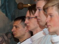 Lai piedalītos ordinācijas Svētajā Misē un vēlāk arī sveiktu jauno priesteri, bija ieradušies garīdznieki un laji no dažādām Latvijas pilsētām. Svētajā Misē piedalījās Jelgavas bīskaps E.Pavlovskis, bīskaps Ā.A.Brumanis, Rīgas Garīgā semināra pasniedzēji un studenti, priesteri no Dominikāņu un Paulīniešu ordeņa, Kurzemes diecēzes priesteri, kā arī jauniesvētītā priestera vecāki un radi. Edijs Silevičs ir dzimis 1981. gada 20. janvārī. 2005. gadā Latvijas Universitātē ieguvis bakalaura grādu bibliotēkzinātnēs. 2007. gadā, 26 gadu vecumā, jūtot aicinājumu uz priesterību, iestājās Rīgas Garīgajā seminārā. Ordinēts par diakonu 2011. gada 8. maijā. |