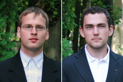 Pēc rakstiskā pārbaudījuma un mutiskām pārrunām tieši par šo reflektantu uzņemšanu izšķīrās komisija, kuras sastāvā bija Latvijas bīskapi un RGS mācībspēki. Kristaps Oliņš (attēlā pa labi) ir no Liepājas Svētā Jāzepa katedrāles draudzes, kurš tikko beidzis Liepājas 1. Valsts ģimnāziju. "Doma par semināru manī iekrita kā sēkla Lielās Piektdienas dievkalpojumā, kad tika turēts krusts un cilvēki nāca un to pagodināja," saka Kristaps. "Vienu brīdi turot krustu un raugoties pār tā malu uz cilvēkiem, kas nāk, radās spontāna doma: „Es vēlos būt priesteris!" No tās dienas šī doma kā sēkliņa, kas augsnē iekritusi, dīgusi un augusi, visu laiku atgriezās pie manis. Vadoties pēc šī aicinājuma, ko izjutu, esmu šodien šeit. Baznīca acīmredzot arī ir lēmusi, ka esmu piemērots kandidāts." Kristaps stāsta, ka ticībai pievērsies pats. Ģimenē un rados neesot ticīgu cilvēku. Pēc Kristapa teiktā, tas esot noticis 15 gadu vecumā: "Manī bija alkas, tāds kā tukšums, ko nevarēja piepildīt draugi. Man arī ļoti iet pie sirds vēsture. Ar vēsturi es nonācu pie jautājumiem par to, kas ir nāve un kāda ir dzīves jēga. Tas, ko es meklēju, bija dzīvība un dzīves apzināšanās. Nākot pie Dieva, es tiku piepildīts, un slāpes tiešām pazuda. Es sapratu, ka es tanī vēlos dalīties, jo zinu, cik slikti var būt bez Dieva. Manā draudzē bija priesteris, kas mani sagaidīja, uzņēma un ieveda Kristus vēsts noslēpumā - Gatis Mārtiņš Bezdelīga. Es vēlos būt tāds pats priesteris cilvēkiem, kas tiešām vēlas atgriezties." Jānis Rajeckis ir no Latgales, Bērzgales draudzes. Jānis ir absolvējis Aglonas vidusskolu un par iestāšanos seminārā saka: "Dievs ļāva iespēju jūklī saskatīt semināru. Piecus gadus es kalpoju kā ministrants Aglonas draudzē un arī Bērzgales draudzē, un Kungs mani arvien vairāk „vilka" tuvāk pie altāra. Šogad pirms Vasarsvētkiem lūdzos novennu uz Dievu Svēto Garu, un 3. Vasarssvētkos, kad atbrauca bīskaps uz Aglonu, sapratu, ka man ir jālūdz no viņa svētība, lai es stātos seminārā." "Esmu kristīts jau mazotnē, arī pie pirmajiem sakramentiem bērnībā biju piegājis, taču tad garīgā dzīve bija apsīkusi. Tomēr Dievam bija labpaticis, ka es atkal pie Viņa atgrieztos." Noslēgumā Jānis piebilda: „Es pateicos Dievam par katru dienu, ko Viņš man dod, un tad pateicībā veltu to Viņam atpakaļ arī ar visām savām vājībām un neveiksmēm. Es pateicos Viņam, kurš man dāvā iespēju katru dienu Viņu mīlēt." LRKB IC Foto: Baiba Motivāne |