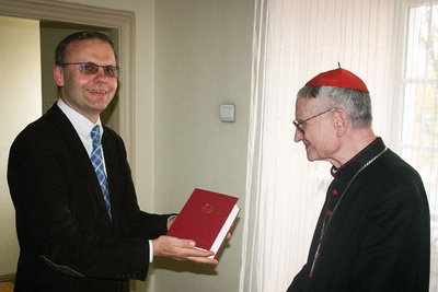 Kardināls dāvanā saņēma paplašināto Bībeles tulkojumu, kura Vecajā Derībā ietvertas deiterokanoniskās grāmatas. Vērtējot jauno Bībeles tulkojumu, kardināls J. Pujats pauda pārliecību, ka tas būs paliekošs. V. Tēraudkalns norāda, ka jaunais tulkojums ir īpašs ar to, ka dažas no tajā ietvertajām grāmatām latviešu valodā tulkotas pirmo reizi, tostarp 3. un 4. Makabeju grāmata, kā arī 151. psalms. Atsevišķas no jaunajā tulkojumā ietvertajām grāmatām ir paredzētas pareizticīgajiem. Strādājot pie tulkojuma, tika salīdzināts Bībeles teksts grieķu un latīņu valodās. Kardināls J. Pujats, kurš labi pārzina latīņu valodu, ar prieku atzīst, ka teksts abās valodās ļoti labi saskanējis. Grūtības radījuši vien daži vārdi Vecajā Derībā, kuru nozīme nav zināma. Kā vienu no piemēriem V. Tēraudkalns min vārdu „Sela" - iespējams, tas apzīmē kādu mūzikas instrumentu, bet var nozīmēt arī „pauze". Pastāv arī iespēja, ka atsevišķu vārdu nozīme gadu tūkstošu laikā mainījusies. Baušļu tulkojums domstarpības gan nav radījis, jo „tie ir tik fundamentāli, ka tos saprot visās valodās", - ar smaidu piebilst kardināls. Atsevišķās vietās ir norādīts gan protestantiem, gan katoļiem tuvais tulkojums. Piemēram, Lūkas evaņģēlija 1. nodaļas 28. pantā, kur eņģelis Gabriels uzrunā Mariju, ir protestantiem ierastais tulkojums - „Esi sveicināta, izredzētā!" ar piebildi - „Pēc Romas katoļu tradīcijas - žēlastības pilnā". Līdzīgi ir ar grāmatu nosaukumiem - piemēram, „1. Mozus grāmata" ir protestantu, bet „Iesākumā" (no latīņu val. Genesis) katoļu tulkojums. No katoļu puses pie jaunā Bībeles tulkojuma strādāja Jānis Priede, kas bija pāris deiterokanonisko (Salamana un Sīraha gudr. gr.) grāmatu tulkotājs, Paskāls M. Jerumanis, kas pārlasīja daļu Jaunās Derības tekstu, kardināls Jānis Pujats, kas aktīvi piedalījās darba grupa sēdēs. Viens no Apvienoto Bībeles biedrību Bībeles tulkošanas darba konsultantiem Antonijs Abela (Malta) bija katoļu priesteris, kas parasti, viesojoties Latvijā, uzturējās Rīgas Garīgajā seminārā un paralēli lasīja tur lekcijas.