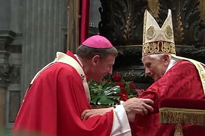 "Līdzīgi kā daudziem citiem arī man pāvesta Benedikta XVI lēmums atkāpties no amata bija negaidīta ziņa. Esmu pārliecināts, ka šo lēmumu viņš ir rūpīgi izvērtējis un pie tā nonācis pēc daudzām lūgšanās un pārdomās pavadītām stundām. Benedikta XVI paziņojums ir ļoti pazemīgs. Acīmredzot, apzinoties savas robežas un domājot par lielāku Baznīcas labumu, viņš vēlas, lai pāvesta vietu ieņem kāds gados jaunāks kardināls. Kopš 2005. gada 19. aprīļa, kad kardināli Benediktam XVI uzticēja šo atbildīgo kalpojumu, viņš ir paveicis ļoti daudz. Bet vispirmām kārtām devis ļoti skaistu ticības liecību," atzīst Rīgas arhibīskaps-metropolīts Zbigņevs Stankevičs. Pāvests atkāpsies no amata brīvi, saskaņā ar tiesībām, ko paredz Kanonisko tiesību kodeksa 332 §2 punkts. Savu lēmumu Benedikts XVI pamato ar to, ka pēdējo mēnešu laikā ir izsīcis viņa spēks un viņš vairs nespēj labi veikt uzticēto kalpojumu. LRKB IC Foto: Benedikts XVI pasniedz palliju arhibīskapam Z.Stankevičam 2011.gadā Vatikānā |