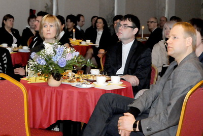 Speciāli Lūgšanu brokastīm bija sagatavots videosižets, kurā bija redzams, kam jūtas pateicīgi ielās un darbavietās sastaptie cilvēki. Pasākumu vadītāji informēja, ka 1. novembrī kuldīdznieki piedalīsies kārtējās Lūgšanu brokastīs Rīgā, un ka tiek plānots arī pirmais reģiona mēroga pasākums. Foto: Kurzemnieks.lv |