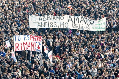 „60 lūgšanu stundas būs veltītas Svētā tēva nodomos. Reizē tā būs pateicība Dievam par Benedikta XVI pontifikāta dāvanu, kā arī lūgšana par jauno pāvestu, cerot, ka viņš, tāpat kā iepriekšējie pāvesti, būs daudzu valodu pratējs, kurš spēs uzrunāt arī visas pasaules jauniešus, un ka viņš būs Baznīcas un pasaules cerība,” saka Papaboys. Viņi piebilst, ka šo pontifikātu atcerēsies kā „Prieka pontifikātu”. Radiovaticana.org Foto: News.va |