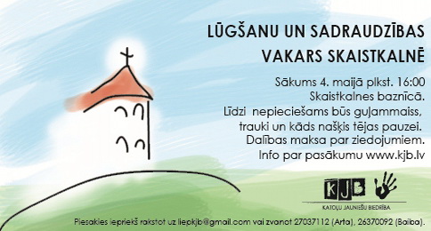 Kā zināms, laiks kopš pagājušā gada oktobra tiek saukts par Ticības gadu. Tā ir pāvesta Benedikta XVI iniciatīva, kas var palīdzēt kristiešiem un visiem citiem cilvēkiem tikt stiprinātiem ticībā un tādēļ tiek rīkoti dažādi pasākumi – viens no tiem notiks jau šī gada 4. un 5. maijā Skaistkalnē. Vietas izvēle nav nejauša – Skaistkalnē ir svētvieta, kurā tiek godināta Dievmāte, Latvijas ģimeņu aizbildne. Pasākumu paredzēts sākt sestdienas pēcpusdienā, kopīgi piedaloties lūgšanās, Svētajā Misē, dažādās sarunās un aktivitātēs dabā, kā arī kopīgā Rožukroņa dziedājumā 4. maija vakarā. Savukārt svētdien, 5. maijā, pēc kopīgām brokastīm paredzēta svētceļnieku no Jelgavas sagaidīšana ar dziesmām, kā arī svētdienas Mise plkst. 12:00. Lūgšanu un sadraudzības vakaru Skaistkalnē rīko Liepājas katoļu jauniešu biedrība. Info un iepriekšējā pieteikšanās: 2. maijā pēc rīta Sv. Mises plkst. 7.30 Jelgavas katedrālē sāksies svētceļojums kājām Jelgava - Skaistkalne, lai lūgtos par ģimenēm. Pieteikšanās šeit (internetā) vai pie pr.Jurija 27161137 (tele2); 25420014 (Bite). |