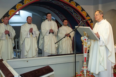 "Esam šodien šeit sanākuši, lai turpinātu svinēt Kristus augšāmcelšanos, kā arī, lai pieminētu bīskapu Sloskānu, kurš 18. aprīlī 1981. gadā piedzima debesīs. Tieši šis datums, ja godināmo bīskapu atzīs par svēto, būs viņa diena Baznīcas kalendārā," dievkalpojuma sākumā klātesošiem sacīja pr. A. M. Jerumanis. Sprediķī priesteris Andris Jerumanis apcerēja Kristus sacītos vārdus: “Neviens nevar nākt pie manis, ja Tēvs, kas mani ir sūtījis, viņu neatved." "Šie vārdi nozīmē, ka Dievam pieder iniciatīva!" skaidroja priesteris. Dievs ir tas, kurš nemitīgi klauvē pie mūsu durvīm. Mēs nedzirdam viņa balsi, tāpēc, ka neesam uzmanīgi, mūsos ir liels troksnis, kas noslāpē Dieva balsi vai arī mums nav vairs spēka tās durvis atvērt. Mēs zināmā mēra esam aizmiguši un domājam, ka var iztikt bez Dieva. Esam aizņemti ar darbu un steigu, un garīgām lietām vairs neatliek laika. Mūsu sirds nav brīva. Mēs tik daudz esam saņēmuši no Dieva un būtu vērts pārdomāt, kuras ir tās primārās vērtības. "Lai mūs nepārņemtu pasaulīgais gars," noslēgumā atgādināja pr. A. Jerumanis, "ir jālūdzas un jāizkopj sava garīgā dzīve. Dievs ar mums katru grib izdarīt to, ko Viņš izdarīja ar bīskapu Sloskānu – mūs pārveidot." Pēc Svētās Mises visi klātesošie devās pie bīskapa Sloskāna kapa, lai kopīgi lūgtos. Tad sekoja Lugano Teoloģijas fakultātes profesora Andra Jerumaņa konference par godināmo bīskapu, kas notika Aglonas bazilikas Baltajā zālē. Konferencē profesors izcēla bīskapa personību un uzsvēra, ka Ticības gadā ir vērts pārdomāt par Boļeslavu Sloskānu, jo viņš bija ticības liecinieks. "Bīskaps Sloskāns bija spoža Dieva gaisma tā laika tautiešiem. Daudzi toreiz zināja, ka svētais ir starp viņiem. Pāvests Pijs XI aicināja viņu licināt Eiropā par to, kas bija noticis un kam viņš bija liecinieks. Kad bīskaps ieradās Lizjē, viņu jau toreiz uztvēra kā ticības liecinieku, kā mocekli un svēto. Dzīves laikā viņu jau sauca par svēto. Šo atmiņu Padomju Savienības režīms mēģināja izdzēst, jo visi baidījās no bīskapa Sloskāna. Viņš bija balss Rietumos, kas iestājās par visiem kristiešiem, kas bija vajāti Padomju Savienībā. Bīskapa svētuma slava auga arī cietumā Solovkos un Sibīrījā. Šodien daudzi ir aizmirsuši, kas bija bīskaps Sloskāns, jo tā ir viena daļa, kas mums tika nozagta, un tagad tā ir jāatgūst atpakaļ," teica Andris Jerumanis. Mums ir pienākums viņu neaizmirst, un liecināt par viņu nākamajām paaudzēm, jo bīskaps bija izcila personība. Boļeslavs Sloskāns ir godināmais un tas nozīmē, ka Baznīca atzīst divas lietas: pirmkārt, ka viņa dzīves laikā bīskapam bija svētuma slava, otrkārt - viņš bija svēts cilvēks tikumīgā līmenī. Prof. Jerumanis konferencē atklāja, ka ar godināmā bīskapa aizbildniecību ir saņemtas vairākas žēlastības. Ir notikuši arī brīnumu, kurus tagad cenšas izprast zinātniskajā līmenī. Ko Dievs mums parādīja caur bīskapu Sloskānu, jautāja profesors? Pirmkārt, uzticību vajāšanu laikā. Otrkārt, gatavība atdot savu dzīvību kā labais gans par avīm. Treškārt - viņš bija piedošanas paraugs. Lūk, trīs aspekti, ar kuriem bīskaps Sloskāns izceļas un var mūs iedvesmot. Noslēgumā Andris Jerumanis informēja par vēl dažiem pasākumiem, kas notiks šogad, kad tiek atzīmēta bīskapa Sloskāna 120. dzimšanas gadadiena: Rīgas Katoļu ģimnāzijā notiks starptautiska konference, Katoļu ģimnāzijā tiks atvērts arī muzejs bīskapam Sloskānam un visiem vajātiem priesteriem, notiks svētceļojums uz Solovku salām no 19. - 26. augustam, kur ieslodzījumā bija bīskaps Sloskāns. Savukārt 16. oktobrī Eiropas Parlamentā bīskapa Sloskāna piemiņai tiks demonstrēta filma. Katedrāle.lv |