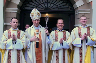 Svētās Mises sākumā arhibīskaps-metropolīts Zbigņevs Stankevičs izteica prieku par semināristiem, kuri izteikuši vēlēšanos un izgājuši visus nepieciešamos sagatavošanās etapus, lai ceļā uz priesterību tiktu iesvētīti par diakoniem, un aicināja ikvienu lūgties par tiem. Homīlijā arhibīskaps Z. Stankevičs uzrunāja sanākušos, atgādinot, ka šis lēmums pasaules acīm var šķist nesaprotams. „Dārgie kandidāti, Kārli, Pēteri, Aivar, profesori, formatori, radinieki, draugi, kas esat sanākuši šeit uz šo svinīgo ceremoniju. Cik es saprotu, pie jums ir atnākuši jūsu skolas kolēģi, vismaz daži, un būtu interesanti redzēt, ko par to domā jūsu „normālie" klasesbiedri. Tad, kad es tikko biju iesvētīts par priesteri un mums bija institūta salidojums, pie manis pienāca kursa biedrene un varēja redzēt, ka viņai iekšā deg šis jautājums. Viņa teica: „Zbigņev, bet kas ar Tevi notika? Tu taču biji tāds normāls, biji savējais." Jo es biju tāds, kā visi pārējie, bet pēkšņi vienā brīdī mana dzīve radikāli izmainījās. Es redzēju, ka viņa nebija gatava dzirdēt to, ko tajā brīdī vajadzēja atbildēt, vienkārši sirsnīgi pasmaidīju un mana atbilde bija klusēšana. Bet es domāju, ka varbūt arī vienam otram jūsu klasesbiedram sirdī ir līdzīgs jautājums - kas tad ar jums ir noticis, ka jūs esat šeit altāra priekšā, apņematies dzīvot celibātā, lūgties breviāru katru dienu un izslēgties no it kā normālās dzīves." Arhibīskaps klātesošiem skaidroja semināristu izvēli: "Saprotiet, viņi nav sekojuši tai mūsdienu sabiedrības galvenajai spalvai - apmierināt savas baudas, taisīt karjeru un iekārtoties dzīvē tā, lai paši būtu centrā. Viņi ir izvēlējušies atbildēt uz Kristus aicinājumu sludināt Evaņģēliju, sludināt to, ka ne no maizes vien dzīvo cilvēks. Ka tomēr ir Dievs un ir Viņa valstība un, ka cilvēks nav tikai miesa, ka cilvēkā ir vēl daudz, daudz dziļāka esamības dimensija, kura jāņem vērā ļoti nopietni. Viņi to ir ņēmuši vērā nopietni un izlēmuši veltīt savu dzīvi tam, lai paši to izkoptu un lai arī citiem palīdzētu to atklāt. Lūk, tā ir viņu misija, šeit viņi ir kļuvuši par savādniekiem pasaules acīs, vai varbūt jūsu, viņu skolas biedru, acīs. Bet es cenšos tagad paskaidrot, kas tam ir pamatā un gribu pateikt, ka jā, pasaules acīs tā ir muļķība, bet kā svētais Pāvils vienā no savām vēstulēm saka, ka pasaules acīs tā ir muļķība, bet Dieva priekšā tā ir gudrība, jo patiesībā augstākā gudrība ir piepildīt savu dziļāko aicinājumu." Z.Stankevičs norādīja arī uz to, ka diakonu kandidāti nav aizmirsuši par miesu, gluži pretēji, šie puiši ir vieni no sportiskākajiem seminārā. „Viņi stingri stāv ar kājām uz zemes, viņiem ir integrāla pieeja dzīvei. Tomēr viņi redz nevis tikai miesu, bet ir atklājuši arī šo garīgo dimensiju, atzinuši to par svarīgu un vēlas palīdzēt citiem arī to atklāt un atklāt Dieva klātbūtni, Dieva valstības klātbūtni šai pasaulē. Un mana dziļākā pārliecība ir tā, ka tas ir tas, kas visvairāk vajadzīgs Latvijai šobrīd, un ka viņi ir izvēlējušies labāko daļu." LRKB IC Foto: RGS |