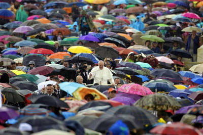 Runājot par šodien izplatīto iebildumu „Kristum jā, Baznīcai nē”, pāvests paskaidroja: „Bet tieši Baznīca mūs ved pie Kristus un pie Dieva. Baznīca ir lielā Dieva bērnu saime. Protams, tai ir arī cilvēciskie aspekti. Tās locekļos – garīgajos ganos un ticīgajos – redzam trūkumus, nepilnības un grēkus. Tie ir arī pāvestam, vai ne? Viņam ir daudz trūkumu, nepilnību un grēku! Taču viena lieta ir skaista, proti, kad mēs apzināmies, ka esam grēcinieki, atrodam Dieva žēlsirdību. Dievs vienmēr piedod. Neaizmirsīsim to: Dievs vienmēr piedod!”