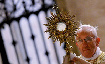 Ceturtdienas vakarā pāvests Svētā Jāņa Laterāna bazilikas laukumā vadīja Euharistijas svinības. Pēc tām viņš devās tradicionālajā Vissvētākā Sakramenta procesijā pa Merulāna ielu uz Svētās Marijas Lielāko baziliku. Sekošana, vienotība un dalīšanās – bija Franciska Svētās Mises laikā teiktās homīlijas atslēgas vārdi. Viņš mudināja ticīgos sekot Jēzum, klausīties Viņā un mācīties no Viņa solidaritātes īsto nozīmi.