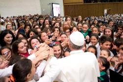 Viens no pusaudžiem, Frančesko Bassani lūdza pāvestu pateikt dažus iedrošinājuma vārdus viņa ticības ceļā, kas nereti ir saistīts ar grūtībām.