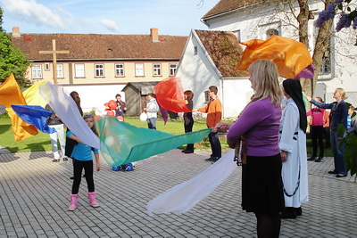 Šī paša gada 27. maija rītā tika celebrēta pirmā Svētā Mise, pēc kuras tika atzīmēts baznīcas laukums un ēkas izmēri, ielikts baznīcas pamatakmens un iemūrēta plāksne ar šī vēsturiskā notikuma aprakstu. Arī šī gada 26. maijā Kuldīgas katoļu draudze pulcējās kopā, lai kopā ar visu Baznīcu svinētu Trīsvienības svētkus, kas ir Kuldīgas baznīcas titulsvētki. Svētku svinības iesākās ar svinīgu Svēto Misi baznīcā. Šajā dienā draudzes prāvests Mihails Volohovs savā sprediķī klātesošos aicināja pārdomāt par to kas ir draudze, kas ir tās veidotājs un vienojošais spēks. Sprediķa noslēgumā prāvests novēlēja, lai ikviens no klātesošajiem, stiprinātu savu ticību, smeļot spēku Euharistijā un to apliecinātu savā draudzē un visā savā dzīvē. Pēc Svētās Mises visi tika aicināti piedalīties svētku otrajā daļā, kas norisinājās baznīcas dārzā. Šeit klātesošajiem, kuri bija pulcējušies kuplā skaitā, bija iespēja parādīt savas radošās spējas un dalīties zināšanās par savu draudzi. Pirmajā kopīgajā uzdevumā no atsevišķiem burtiem bija jāizveido uzraksts, kas atklāja šo svētku galveno nozīmi – „Gods lai ir Tēvam, gods lai ir Dēlam, gods lai ir Svētajam Garam”. Tālāk sekoja viktorīna, kurā klātesošie tika sadalīti trīs komandās un vajadzēja atbildēt uz jautājumiem par Kuldīgas draudzi, tās vēsturi un aktivitātēm šobrīd. Kopīgi tika noskaidrots, ka 2012. gadā mūsu draudzē notikušas 7 laulības, 14 kristības, ka gada laikā svēto komūniju pieņēmuši 8340 ticīgo, ka mūsu draudzē darbojas trīs Rožukroņa pulciņi, pēdējo gadu laikā draudzē organizēti seši Alfa kursi un daudz citu interesantu lietu un faktu. Turpinājumā sekoja kopīgs svētku mielasts, laiks kopīgām sarunām un iespēja atklāt savu zīmēšanas talantu no maziem gabaliņiem veidojot kopīgu gleznas „Svētā Trīsvienība” attēlu. Svētki noslēdzās ar slavas un pateicības dziesmām Trīsvinīgajām Dievam par mūsu draudzi, par mūsu kopību. Maija mēneša Kuldīgas draudzes avīzītē „Draudzes vēstis” prāvests dalījās ar pārdomām par draudzi. Viņš rakstīja: „Draudze ir cilvēku vidū klātesošais un darbojošais Dieva un Baznīcas noslēpums. Draudze, galvenokārt, nav kāda struktūra, kāda teritorija, kāda ēka, bet vispirms jau Dieva ģimene, vienotības un brālīguma gara vadīta. Tā nekad nevar pārstāt būt par ģimeni, brālīgu un atvērtu. Draudzes fundamentālais uzdevums ir būt par vietu, kas sekmē kristīgās ticības un ikvienas paaudzes cilvēku savstarpēju satikšanos: sākot no bērniem līdz pusaudžiem, no jauniešiem līdz pieaugušajiem, no vientuļajiem līdz ģimenēm.” Gribas ticēt, ka šajā svētku reizē, katrs no klātesošajiem jutās piederīgs šai Dieva bērnu ģimenei, saņēma daudz prieka un tika iedrošināts tālākam ticības ceļam, kuru mēs varam iet kopā. Katedrāle.lv |