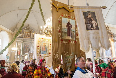 Uz svētku pasākumiem dalībnieki un viesi bija atbraukuši gan no tuvākām un tālākām Latvijas vietām, gan arī no Igaunijas un Lietuvas. Pasākumi pilsētā mijās ar pasākumiem Alsungas Sv.Miķeļa katoļu baznīcā. Tā ikviens 28. septembrī dievnamā varēja dzirdēt Lindas Ločmeles (soprāns) un Silvijas Rebuško (ērģeles) uzstāšanos un Daces Priedes dzejas lasījumus, kā arī piedalīties Rīgas arhibīskapa vadītajā svētku Svētā Misē. Dievkalpojuma sākumā arhibīskaps atklāja, ka šajā skaistajā baznīcā viesojas pirmo reizi, taču ir daudz dzirdējis par Alsungas draudzi un ir prieks, ka ar svētku dalībniekiem var kopā lūgties. "Pēdējos gados jūsu novada kultūra gūst arvien lielāku ievērību arī Baznīcā," sprediķī klātesošajiem teica Z.Stankevičs. "Līdzīgi kā cilvēks ir viens un neatkārtojams, tā arī katram novadam Dievs devis savu dāvanu. Ja cilvēks sadarbojas ar Dievu, tad viņš ir kā gabaliņš dievišķās pasaules lielajā mozaīkā un līdzīgi ir ar novadiem, kas ir tikai lielāks mozaīkas gabaliņš pasaules kontekstā. Dievs vēlas, lai visa pasaule atainotu Viņa mīlestību, patiesību un skaistumu. Caur jūsu dziedājumiem šis skaistums manifestējas. Ir ļoti svarīgi apzināties, ka jūs esiet Dieva instruments, tāpēc esiet uzmanīgi un nepadodieties pūķa jeb sātana, kuru uzvarēja erceņģelis Miķelis, kārdinājumam, lai nesajustos labāki vai pārāki par citiem. Kultūras jēga ir izteikt Evaņģēlija garu un tās vērtības. Izpaust Dieva patiesību un labestību. Palīdzēt cilvēkam pārveidoties un mudināt cilvēku atvērties uz tām vērtībām. Lūk patiesas kultūras būtība." Sprediķī arhibīskaps sniedza arī savu redzējumu situācijai, kas šobrīd atktuāla visā valstī un it sevišķi mazākās pilsētās un novados. Kā daudzās vietās Latvijā, arī no Alsungas novada jaunie brauc prom, lai meklētu iespējas lielākās pilsētās vai pat ārpus valsts. Zbigņevs Stankevičs teica: "Ja Dieva svētība nāk pār kādu ļaužu grupu vai šajā gadījumā novadu, tad atveras jaunas iespējas. Jo ne jau materiālos resursos ir galvenā problēma. Ja ir atvērtība uz Dievu, tad arī varam saņemt idejas ko var darīt, lai tepat uz vietas būtu perspektīva. Ja esam vienoti ar Kungu un mūsu prioritātes ir pareizi sakārtotas, tad pār mums nāk viņa svētība un mēs sākam redzēt mūsu dzīvi ticības gaismā." Lai apmeklētu Alsungas draudzi baznīcas titulsvētkos un piešķirtu Iestiprināšanas sakramentu, 29. septembrī vizītē bija ieradies Liepājas bīskaps Viktors Stulpins. Pirms piešķirt Iestiprināšanas sakramentu diviem jauniešiem, bīskaps sprediķī apcerēja svētā Miķeļa personu. "Kas tik īpašs ir svētā Miķela personā, ka mēs viņu pieminam? Kā viņš vienlaicīgi izraisa gan lielu respektu, gan daudzkārt biedē? Kā viņš var mums palīdzēt šajā mūsu ceļā tuvāk pie Dieva?" jautāja bīskaps. "Svarīgākā īpašība viņa personā ir fakts, ka viņu sauc par debesu princi un viņa uzdevums ir ticības Dievam sargāšana. Viņš ir arī pavadonis ceļā pie Dieva. Tāpēc no jauna vajag ieticēt un vērsties pie svētajiem aizbildņiem, kuri tādēļ, ka ir Dieva troņa priekšā, aizvien gaida, lai mēs pie viņiem grieztos pēc palīdzības. Un viņi palīdzēs mums dzīvē un nepievils." Pēc Svētās Mises ar Euharistisko procesiju un suitu kolektīvu koncertu baznīcā, svētku dalībnieki baznīcas dārzā tikās pie kopīgas maltītes un vietējo ēdienu baudīšanas. Visu svētku laiku baznīcā varēja apskatīt Ventspils novada ikonu gleznotājas Ārijas Rubenes trīs ikonas. Katedrāle.lv |