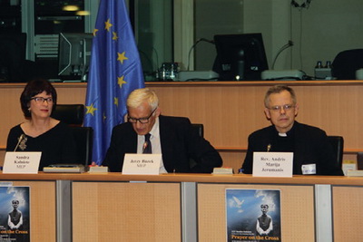 Uz filmas demonstrāciju bija atnākuši Briselē dzīvojošie latvieši, parlamenta deputāti, kā arī skatītāju vidū varēja satikt lietuviešus, poļus, horvātus, somus un īrus. Viņi bija atnākuši, lai uzzinātu kaut ko vairāk par Baznīcas Latvijā pieredzi padomju gados, kā arī lai iepazītu godināmā bīskapa Sloskāna dzīvesstāstu un personību. Prezentācijā sastaptie beļģi priecīgi stāstīja, ka tuvākajās nedēļās būs gatavs filmas tulkojums arī flāmu valodā un tad to varēs apskatīties arī 20 minūšu attālumā no Briseles esošajā Luvēnā, kur bīskaps pavadīja tik daudzus savas trimdas laika gadus. Pēc filmas skatītāji pateicās par skaudro, bet arī iedvesmojošo stāstu, kas bija rosinājis daudz ko pārdomāt. Būtiskākās atziņas pēc filmas atklāja Sandra Kalniete: "Vienmēr pacelties pāri naidam, jo naids un atriebība visvairāk sagrauj cilvēku. Un vienmēr skatīties nākotnē." "Lielisks stāsts, izcila personība," tā pēc filmas noskatīšanās teica bijušais Eiropas Parlamenta priekšsēdētājs Ježijs Buzeks no Polijas, kas savulaik bija viens no „Solidarnošč” līderiem. "Šis stāsts ir ļoti noderīgs ikvienam no mums šodien. Eiropas vēsture ir ļoti sarežģīta un mēs joprojām mēdzam nest līdzi pāridarījumus, ko kāda cita tauta mums pagātnē ir nodarījusi. Bet tas mūs dara nebrīvus un kavē virzību uz priekšu. Bīskaps Sloskāns ar savu dzīvi pierāda, ka daudz svētīgāks ir piedošanas un izlīgšanas ceļš, jo tikai tas cilvēku dara pa īstam brīvu un naida vietā atraisa ceļu mīlestībai." Pēc "Katoļu Baznīcas Vēstnesis" materiāliem Foto: Ingrīda Puce |