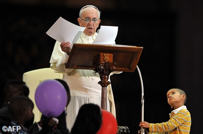 Svētais Pāvils norāda arī uz citu cerības tēlu – uz dzemdību tēlu. Pāvests teica, ka mēs gaidām, gluži tāpat, kā tuvinieki gaida mazuļa piedzimšanu. Arī cerībai ir tāda pati dinamika – „dot dzīvību” dinamika. Taču tajā nevar saskatīt Svēto Garu, lai arī Gars darbojas. Tas darbojas mūsos gluži tāpat kā mazs sinepju graudiņš. Taču tas ir pilns ar dzīvību, ar spēku, kas tam palīdz izaugt par lielu koku. Gars darbojas kā raugs – to neredz, taču tas ir. Pāvests turpināja: „Viena lieta ir dzīvot cerībā, jo cerībā esam izglābti, un otra lieta ir dzīvot kā labiem kristiešiem, ne vairāk, ne mazāk. Dzīvot, gaidot atklāsmi un dzīvot labi, saskaņā ar baušļiem. Būt noenkurotiem tajā krastā, vai arī piestāties pie mākslīgas salas. Domāju par Mariju, jaunu meiteni. Pēc tam, kad viņa izdzirdēja, ka ir mamma, mainījās viņas attieksme un viņa gāja un dziedāja slavas dziesmu. Kad sieviete paliek stāvoklī, viņa ir sieviete, taču ne tikai sieviete vien – viņa kļūst mamma. Un kaut kas no tā piemīt cerībai. Mainās attieksme: esam mēs, bet neesam mēs; esam mēs, meklējot tur, tālāk. Esam noenkurojušies tur, tālāk.” Radiovaticana.org Foto: AFP |