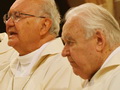 Papildināts: Bēru dievkalpojums notiks 27. decembrī plkst. 12.00 Liepājas sv.Jāzepa katedralē. No bīskapa Ā. A. Brumaņa atvadīties katedrālē varēs jau no 26. decembra (ap plkst. 12.00). Priesteriem, kas vēlēsies piedalīties bēru dievkalpojumā, lūgums paņemt līdzi albu, violeto stolu un Ekzekviju grāmatiņu un ierasties jau plkst. 11.20 uz Ekzekviju dziedāšanu katedralē. Priesteri, kas plāno ierasties, aicināti pieteikties pie pr. Romāna Grantovska (29219995). Ārvaldis Andrejs Brumanis dzimis 1926. gada 13. februārī Kurzemē Klosteres pagasta Liepkalnu mājās lauksaimnieku ģimenē. Pēc pamatskolas beigšanas mācījies Kazdangas lauksaimniecības skolā (1940.-1944.). Tajā pašā gadā ticis iesaukts darba nometnē, vēlāk leģionā. 1944. gada augustā devies uz fronti, kur 1945. gada 6. martā ticis ievainots. Lībekā sagaidījis kapitulāciju, kam sekojis gūsts, no kura izglābis bīskaps Jāzeps Rancāns. Sastapšanās ar bīskapu Boļeslavu Sloskānu deva impulsu domai par priesterību. 1947.gadā tika uzsāktas franču valodas studijas Beļģijā un Ā. A. Brumanis iestājās Latviešu garīgajā seminārā, kurš darbojās Beļģijā B.Sloskāna vadībā. Tad četrus gadus studijas tiek turpinātas Namīras garīgajā seminārā, studējot teoloģiju. 1948. gadā iestājies Florefas Garīgajā Seminārā, kur studējis līdz 1950. gadam, vēlāk turpinot studijas Namīrā, pēc kuru beigšanas 1954. gada 25. jūlijā Namīras bīskaps Andrē Marī Šarū Ārvaldi Āndreju Brumani ordinējis par priesteri. 1957. gadā ieguvis licenciāta grādu Baznīcas vēsturē Luvēnas universitātē, kam sekojušas studijas Gregora universitātē Romā, kuru beidzis 1960. gadā ar licenciāta grādu teoloģijā. 1968. gadā ieguvis vēstures zinātņu doktora grādu, aizstāvot franču valodā uzrakstīto darbu par Mogiļevas metropolītu Staņislavu Siestženceviču. Pastorālo darbu veicis Namīrā (1961.-1968), vēlāk turpinājis strādāt Vatikāna radio latviešu redakcijā (1968.-1995.). 1988. gadā pāvests Jānis Pāvils II Brumanim piešķīris monsinjora titulu. Sākot ar 1992. gadu bija mācībspēks Rīgas Garīgajā seminārā un Katehētikas institūtā (tagad RARZI) un turpināja dzīvot Romā un strādāt Vatikāna radio līdz pat nominācijai par Liepājas diecēzes bīskapu, kas notika 1995. gada 7. decembrī. Katehētikas institūtā Ārvaldis Brumanis lasīja lekcijas Baznīcas vēsturē, Latvijas Baznīca vēsturē un Baznīcas sociālajā mācībā. Par bīskapu konsekrēja Vatikānā Svētā Pētera bazilikā pāvests Jānis Pāvils II 1996. gada 6. janvārī. Bīskapa ingress notika 1996. gada 24. martā Svētā Jāzepa katedrālē. Ārvaldis Andrejs Brumanis par Liepājas bīskapu kalpoja līdz 2001. gada 12. maijam, kad viņu amatā nomainīja Vilhelms Lapelis. No 2001. gada 12. maija Ārvaldis Andrejs Brumanis kā Liepājas emeritētais bīskaps dzīvoja Liepājas diecēzes kūrijā līdz pat savai aiziešanai mūžībā 2013. gada 17. decembrī. 2013. gada 4. maijā Liepājas diecēzes emeritētais bīskaps Ārvaldis Andrejs Brumanis par nopelniem Latvijas valsts labā saņēma trešās šķiras Triju Zvaigžņu ordeni. Liepājas bīskapa Ārvalda Andreja Brumaņa kalpošanas laikā (1995. – 2001.g.) Liepājas diecēzē tika iesvētīti 3 priesteri, uzsākta baznīcu būvniecība Saldū, Bārtā, Grobiņā, uzceltas un konsekrētas baznīcas Pāvilostā, Kolkā un Talsos, iesvētītas kapelas Laucienē, Lutriņos, Saldus slimnīcā, Šķēdē un Ezerē. Bīskaps uzaicina dominikāņu brāļus uzsākt kalpošanu Liepājā, tiek uzsākta klostera būvniecība un iesvētīta Sv. Dominika kapela. 2 klostermāsu kongregācijas uzsāk savu darbību Liepājā – Nabadzīgā Bērna Jēzus māsas un Dominikāņu Jēzus un Marijas māsas misionāres. Kā dāvinājums no Vatikāna tiek saņemta Sv. Meinarda baznīca. Tiek atgūtas Sv. Jāzepa katedrāles draudzei piederošās ēkas, kurās šobrīd darbojas Liepājas Katoļu pamatskola. Ar bīskapa svētību 2001. gada aprīlī sāk iznākt Liepājas diecēzes informatīvais izdevums „Nāc”. Bīskaps Ā. A. Brumanis ir autors vairākām latviešu valodā izdotām grāmatām: "Bībelē apslēptie dārgumi", "Laulība un ģimene", "Bīskaps Meinards vēstures gaismā", "Kristīgā sabiedrības mācība", "Sprediķi", apceru krājumi "Cerība nepievils", "Mīlestībā vienoti" un "Zinu, kam ticu". Mūžīgo mieru dod viņam, Kungs, un mūžīgā gaisma lai atspīd viņam! |