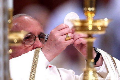 Pāvests aplūkoja dienas lasījumu, kurā vēstīts par Dieva teofāniju ķēniņa Salomona laikā. Kungs mākoņa veidā nokāpj uz svētnīcu, kura piepildās ar Dieva godību. Francisks atgādināja, ka Dievs runā uz savu tautu daudzos veidos – caur praviešiem, priesteriem, Svētajiem Rakstiem. Taču ar teofāniju starpniecību viņš runā citādā, no Vārda atšķirīgā veidā. Tā ir klātbūtne – tuvāka, bez vidutājības. Tā ir Viņa klātbūtne. Pāvests paskaidroja, ka tas pats notiek arī liturģiskajās svinībās. Tas nav sociāls akts, tā nav ticīgo sanāksme, lai kopā lūgtos. Liturģijā klātesošs ir Dievs un Viņa klātbūtne tajā ir ļoti tuva. Svētajā Misē Kunga klātbūtne ir reāla, tieši reāla: „Kad svinam Misi, mēs neatveidojam Pēdējās Vakariņas; nē, tā nav atveidošana. Tā ir pavisam cita lieta: tās ir Pēdējās Vakariņas! Tas nozīmē vēl vienu reizi izdzīvot Kunga ciešanas un pestījošo nāvi. Tā ir teofānija: Kungs ir klātsošs uz altāra, lai tiktu ziedots Tēvam pasaules atpestīšanai. Mēs dzirdam no citiem, vai paši sakām: „Bet, es tagad nevaru, man ir jāiet uz Misi, jāiet izklausīt Misi.” Svēto Misi neizklausa, tajā piedalās, un piedalās šai teofānijā, šai Kunga klātbūtnes noslēpumā mūsu vidū.”