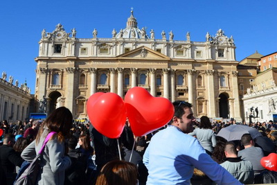 Saderinātie ieradās uz tikšanos ar Svēto tēvu ne tikai, lai klausītos viņa padomos, bet arī, lai kopā lūgtos. Saiets norisinājās patiesā prieka atmosfērā un dziļā dvēseles sakopotībā. Arhibīskaps Vinčenco Palja, sagaidot pāvestu, savā uzrunā atgādināja, ka svētais Valentīns bija 4. gadsimta Terni bīskaps, kurš 14. februārī Romā nomira mocekļa nāvē. Viņš kļuva par saderināto aizbildni, jo palīdzēja kādai jaunai kristietei un pagānu karavīram apprecēties. Notikums izraisīja tik plašu rezonansi, ka arī citi jaunieši steidzās pie bīskapa Valentīna pēc palīdzības. Radiovaticana.va Foto: News.va |