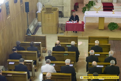 Šodien mēs būvējam „milzīgas sastatnes”, lai aizsniegtu Jēzu, bet tik un tā nespējam Viņu aizsniegt. Varbūt tas ir tādēļ, ka pārāk dzenamies pakaļ pasaulīgajam un nedomājam par savas Kristības dziļāko nozīmi – norādīja sprediķotājs. Kristībā kļūstam par Dieva bērniem un Baznīcas locekļiem, un tas ir ļoti svarīgi. Varbūt mēs pietiekami neapzināmies, ka „ienākam” Baznīcā miruši, grēka nogalināti, bet izejam dzīvi. Tas notiek pateicoties Kristum, kurš pie krusta izlēja par mums savas asinis, lai dāvātu mums jaunu dzīvi. Mēs esam aicināti apzināties, ka Dievs ir izdarījis visu, lai mūs glābtu – atgādināja rekolekciju vadītājs, priesteris De Donatis. Mums, no savas puses, ir jāpateicas Dievam un jāsoļo uz priekšu kopā ar Kristu – nevis Kristum pa priekšu, bet kopā ar Viņu. Radiovaticana.va Foto: L'Osservatore Romano |
