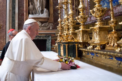 Vatikāna preses sekretārs, priesteris Federiko Lombardi paskaidroja, ka Vissvētākās Jaunavas Marijas svētbildes „Salus Populi Romani” priekšā pāvests lūdzies aptuveni 20 minūtes, un noslēgumā, kā ierasti, uz altāra nolicis ziedu pusķi. Sasveicinājies ar dažiem bazilikā klātesošajiem svētceļniekiem, Svētais tēvs atstāja dievnamu. Pēc dažām stundām viņš devās uz Romas starptautisko lidostu, lai uzsāktu sešu dienu ilgo ceļojumu uz Dienvidkoreju. Tas ir Franciska trešais ārzemju ceļojums, un pirmais ceļojums uz Āzijas kontinentu. Vizīte noslēgsies pirmdien, 18. augustā. Radiovaticana.va |