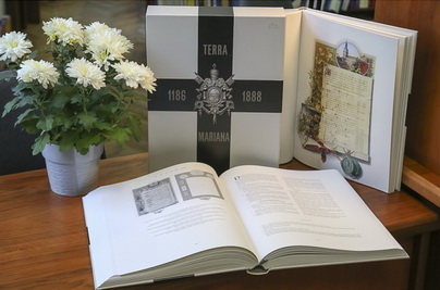 kas ir vēstījums par senās viduslaiku Livonijas telpā dzīvojošo tautu un to etnisko pēcteču pievienošanos kristīgajai pasaulei un Eiropas kultūras telpai, informēja Liepājas Universitātes sabiedrisko attiecību daļa. Albuma „Terra Mariana.1186-1888" oriģināls glabājas Vatikāna Apustuliskajā bibliotēkā. Tas tika izgatavots tikai vienā eksemplārā, ko Baltijas poļu muižniecība dāvināja pāvestam Leo XIII 1888. gadā. Baltijas telpā šim albumam idejas, saturiskās koncepcijas un izpildes ziņā nav līdzvērtīgu eksemplāru. Tajā atrodams bagātīgs vizuālais un tekstuālais materiāls par Livonijas pilīm, pilsdrupām, baznīcām, senu dižciltīgu dzimtu ģerboņiem, zīmogiem, vēsturiskām personībām, kā arī seno sudraba un zelta monētu nospiedumi. 2007. gadā Latvijas Nacionālā bibliotēka un Vatikāna Apustuliskā bibliotēka parakstīja kopizdevuma līgumu, kas paredzēja albuma „Terra Mariana.1186-1888" izdošanu - 10 pilnīgu faksimilizdevuma un 1000 samazināta izmēra faksimilizdevuma eksemplāru izdošanu. Tiem paredzēts pievienot detalizētu zinātnisko komentāru krājumu. 2008. - 2009. gadā noritēja albuma 10 pilnīgā izmēra faksimila druka Itālijas izdevniecībā Franco Cosimo Panini Editore.S.p.a., kas var lepoties ar bagātu pieredzi faksimila izdevumu izdošanā. 2011. gadā albuma faksimila kopijas tika nogādātas Rīgā, bet 2014. gada martā tika pabeigta 1000 eksemplāru un zinātnisko komentāru sagatavošanas un izdošanas darbi. Izdevums ir pieejams Liepājas Universitātes studentiem. Albuma „Terra Mariana.1186-1888" faksimila un komentāru prezentācija notika 27. aprīlī Latvijas Nacionālās bibliotēkas jaunajā ēkā. Foto: Liepajniekiem.lv |