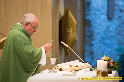 Uzrunājot Svētās Martas nama kapelā sapulcējušos ticīgos, Francisks skaidroja Svēto Rakstu pirmo lasījumu. Apustulis Pāvils aicina kristiešus Efezā slavēt un pateikties Dievam par saņemtajām žēlastībām. Homīlijā Svētais tēvs uzsvēra, ka Dieva slavēšanā izpaužas cilvēka mīlestība un nesavtība. Mēs bieži lūdzam palīdzību, atbalstu, izdziedināšanu, kā arī pateicamies par visu, ko esam saņēmuši, bet retāk slavējam Dievu. Slavēšanas lūgšana ir mazāk praktizēta, jo tā nav viegla, atzina pāvests. „To varam labāk saprast, kad dziļāk pārdomājam, ko Dievs ir paveicis mūsu dzīvē. Viņā – Kristū – Dievs mūs ir izvēlējis no pasaules radīšanas.” Francisks skaidroja, ka slavēšanas lūgšana piepilda mūs ar prieku, mēs jūtamies laimīgi Dieva priekšā. Viņš aicināja atgriezties pie šāda veida lūgšanas, kuras sākuma punkts ir fakts, ka Kungs mūs ir izvēlējies no pasaules radīšanas, lai gan to saprast nav viegli.