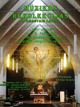 Pagājušā gada decembrī Liepājas sv. Dominika klosterī noslēdzās pirmās liturģiskās mūzikas rekolekcijas jeb darbnīcas – Adventa laika rekolekcijas, kas notika no 12. līdz 14. decembrim. Tajās piedalījās dziedāt mīloši cilvēki no Liepājas, Aizputes un Rīgas. Mācījāmies dažādus adventa dziedājumus, pamatā balstītus dominikāņu tradīcijā. Apguvām arī divas Liepājas mūziķu radītas dziesmas, neiztrūka „Slēdz debess vārtus vaļā, Kungs” M. Celminska apdarē, kā arī viena 16. gadsimta dziesma, kuras vārdi tika speciāli šīm rekolekcijām iztulkoti no poļu valodas. Varētu teikt, ka rekolekcijas jeb mūzikas darbnīcas mēs veidojām kopā – katrs pieliekot savu artavu. Tēvs Oskars Jabloņskis OP palīdzēja iedziļināties Baznīcas liturģijas skaistumā, kā arī visi kopā varējām padalīties pieredzē un pārrunāt jautājumus, kādi radušies līdz šim, kalpojot draudzēs un izvēloties dziedājumus Sv. Misei. Tagad aicinām uz nākošajām muzikālajām rekolekcijām, kurās mācīsimies parastā liturģiskā laika dziedājumus un turpināsim studēt liturģiju. Tās notiks šī gada 6. - 8. februārī, sākoties piektdienas vakarā pēc Sv. Mises un noslēdzoties ar svētdienas Sv. Misi 12.00, kurai tad šo rekolekciju laikā gatavosimies. Īpašais viesis būs pazīstamā mūziķe Sintija Grava, viņa mācīs mums savas dziesmas. Gaidām uz rekolekcijām gan tos, kas jau piedalījās Adventa rekolekcijās, gan jaunus dalībniekus, kuriem, lai viņi varētu pilnvērtīgi iekļauties, centīsimies iepriekš jau sagādāt izstudēšanai iepriekšējo liturģijas lekciju materiālus. Atgādinām, ka "Divi vienā" ("2-1") ir muzikāli liturģiskas nodarbības, apvienotas ar nedēļas nogales rekolekcijām. Tās ir plānotas dažādos liturģiskajos laikos, no piektdienas vakara līdz svētdienai un notiek Liepājā, sv. Dominika klosterī, Jelgavas ielā 17. Nodarbības domātas ikvienam, kam sagādā prieku dziedāt Dieva godam, kā arī iegūt zināšanas par Baznīcas liturģiju. Katrā šādā nedēļas nogalē mūzikas nodarbības vada kāds katoļu kopienā pazīstams mūziķis. Adventa rekolekcijās to darīja sv. Dominika baznīcas sholas vadītāja Kristīne Locika, februāra darbnīcās palīdzēs mūziķe un komponiste Sintija Grava. Rekolekcijas vadīs t. Oskars Jabloņskis OP. Dalībnieki joprojām varēs padziļināt savas zināšanas par liturģiju un liturģisko mūziku, paplašināt savu dziesmu repertuāru ar jaunām dziesmām un jaunām tradicionālo dziesmu aranžijām, bagātināt savu dziedāšanas pieredzi, kā arī uzklausīt rekolekcijas. Dalības maksa nodarbību dalībniekiem, kuri izmantos klostera telpās naktsmājas, būs 18 EUR, bet pārējiem dalībniekiem 9 EUR. Pieteikties var līdz 2. februārim: e-pasts: vai telefoniski: 26705843 – Kristīne. Kristīne Locika Video: Ieskats Adventa rekolekcijās Skatīties YouTube vietnē |