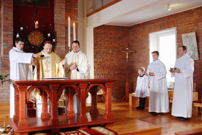 Līdz šim baznīcā kārtīga altārgalda nav bijis, vien ieildzis pagaidu variants. Tieši tādēļ arī radusies doma veidot īstu altārgaldu no vērtīga materiāla. Tā dizainu, mazliet ietekmējies no draudzes pagājušā gada brauciena uz Romu, radīja A. Iesalnieks. "Gribējās, lai pamatā nav kāda no interneta paņemta bilde, bet kaut kas tieši mums darināts. Galds balstās uz astoņiem pīlāriem, tāpēc esmu to nodēvējis par astoņu svētību altāri, kurā šīs svētības ir savstarpēji saistītas," atklāj Andris. Kad rasējumu bija akceptējis gan draudzes priesteris Toms Priedoliņš, gan bīskaps, viņš varēja ķerties pie darba, par izejmateriālu izvēloties vērtīgu koku — osi. "Man kā draudzes priekšniekam un kristietim tas bija īpašs darbs. Novērtēju, ko taisu un kam. Tas ir labākais darbs, ko līdz šim esmu uztaisījis! Altārgaldu veidoju ar pilnīgi citām izjūtām, jo tas nesa ārkārtīgi lielu mieru. Bija pat situācijas, kad darbā biju par kaut ko uzvilcies, tāpēc nodomāju — jāiet nedaudz pie altāra pastrādāt! Zināju, ka, to darot, atkal nomierināšos," atzīst altāra autors. Svētajā Misē bīskaps iezieda jauno altāri ar īpašu eļļu. Uz altāra tika novietots arī kūpoša vīraka trauks, tā dūmiem simbolizējot lūgšanas, kas no šejienes paceļas pretī Dievam. "Mēs pazemīgi lūdzam, Dievs, lai Debesu žēlastība svētī šo baznīcā uzcelto altāri, lai tas vienmēr kalpo Kristus upurim un ir Kunga galds, pie kura Tava tauta stiprināsies dievišķajā mīlestībā! Lai šis altāris ir mums Kristus zīme, baznīcas Sakramentu avots! Lai tas ir svētku galds visiem, kurus Kristus ielūdz uz mielastu! Lai šeit viņi noliek savas rūpes un nastas un saņem jaunu spēku tālākam dzīves ceļam! Lai tas ir ciešas vienotības ar Tevi un miera vieta, bet visi, kuri stiprināsies ar Tava Dēla miesu un asinīm, Viņa Gara piepildīti lai pieaug Tavā mīlestībā! Lai tas ir baznīcas vienības, brālības un saskaņas avots, no kura ticīgie smeļ savstarpējo mīlestības garu! Lai tas ir vieta, kurā mēs Tevi pielūgsim un Tev pateiksimies, līdz reiz nonāksim Mūžīgajos mājokļos, kur nesīsim Tev slavas upuri kopā ar Kristu, Augsto priesteri, kas ar Tevi dzīvo un valda Svētā Gara vienībā, Dievs visos mūžu mūžos," izsmeļošā lūgšanā altāra būtību atgādināja bīskaps. "Altāra galds simbolizē Kristu, kurš ir visa skaistuma avots. Tāpēc tam jābūt nevis tumbočkai, bet kam tiešām vērtīgam. Kas ir altāris? Gandrīz katrā reliģijā tas ir kā upura vieta. Kristietībā altāris iegūst jaunu nozīmi. Tā vairs nav tikai vieta, kur cilvēks upurē kādam dievam, bet Kristus pats ir altāris. Viņš ir reizē Altāris, reizē Upuris un reizē Priesteris, kurš upurē. Tā ir altāra nozīme kristīgajā baznīcā — tā ir Kristus klātbūtnes zīme mūsu vidū. Dievkalpojumā mēs nesvinam jaunu upuri, bet Kristus upuri, kas, pie krusta sācies, nemitīgi turpinās katrā Svētajā Misē. Un uz šī altāra varam sanest arī visu, kas mums ir, visu, kas mēs esam, savus priekus, veiksmes, neveiksmes, ciešanas, iekļaujot tās Kristus upurī," skaidro V. Stulpins. Jaunais altārgalds ir tikai daļa no iecerētajām pārmaiņām — A. Iesalnieks radījis dizainu arī pārējam altārim, kas ar laiku būs stilistiski vienots veselums. Talsuvestis.lv Foto: Magnificat.lv |