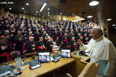 Tas nav veidots no nulles. Dokumentā ir iekļauts pagājušā gada sinodes noslēguma teksts Relatio Synodi, kas trijās daļās atspoguļo divas nedēļas ilgo bīskapu darbu. Bez tam, šis Instrumentum laboris ir papildināts ar atbilžu apkopojumu, kuras kopš iepriekšējās sinodes iesūtīja vietējās Baznīcas no visas pasaules. Noslēdzoties sinodei 2014. gada oktobrī, visām bīskapu konferencēm tika izsūtīti jautājumi, tādējādi dodot iespēju visai plašam cilvēku lokam – bīskapiem, priesteriem un lajiem – paust savu viedokli par izaicinājumiem, kas mūsdienās skar ģimeni, par tās aicinājumu un misiju. Šoreiz īpaši liela nozīme bija pašu laulāto viedoklim. Aptauja reizē bija aicinājums vietējām Baznīcām pārdomāt, kā tās strādā laulāto pastorālās aprūpes jomā, un ko būtu jādara, lai pilnveidotu šo aprūpi. Vairāk nekā 70 lappušu garais dokuments Instrumentum laboris sastāv no trīs daļām: Ieklausīšanās izaicinājumos, kas skar ģimeni; ģimenes aicinājuma izšķiršana; ģimenes misija šodien. Katra no šīm daļām sastāv no vairākām nodaļām. „Nē” dzimumatšķirību atcelšanai Runājot par pirmo daļu, tiek atgādināts, ka šodien samazinās gan Baznīcā noslēgto laulību, gan arī civillaulību skaits, bet tai pat laikā pieaug šķiršanos skaits un mazinās dzimstība. Dokumentā tiek norādīts, ka jaunieši baidās uzņemties pastāvīgas saistības, tai skaitā, izvairās no ģimenes veidošanas. Instrumentum laboris norāda arī uz mūsdienu „kultūras pretrunām” un mēģinājumiem graut personas identitāti, noārdīt atšķirības starp dzimumiem, kā arī viendzimuma laulības pielīdzināt vīrieša un sievietes laulībai. Šajā sakarā izskan aicinājums padziļināti pievērsties dzimumu atšķirības jautājumam ne tikai bioloģiskā, bet arī humānā un kultūras kontekstā, apzinoties, ka atšķirību atcelšana ir nevis risinājums, bet problēma. Ģimene – sabiedrības pamatpīlārs Instrumentum laboris aplūko arī „sociālās pretrunas”, kas grauj ģimeni. Tie ir kari, migrācija, nabadzība, izmantošana, „atkritumu kultūra”, ekonomiskās problēmas. Taču ģimene ir sabiedriskās dzīves balsts, tāpēc jāīsteno tādas politikas, kas veicinātu tās labklājību un attīstību. Sirmgalvju, cilvēku ar īpašām vajadzībām, migrantu un sieviešu cieņa Šajā sakarā dokuments norāda uz ģimeni kā ļoti svarīgu integrācijas instrumentu, lai tiktu veicināta arī to cilvēku cieņa, kuri nereti tiek izstumti no sabiedrības un uzskatīti par nederīgiem. Tie ir vecie ļaudis un cilvēki ar īpašām vajadzībām. Bez tam, tiek norādīts uz nepieciešamību sniegt īpašu pastorālu aprūpi migrantu ģimenēm. Tur, kur cilvēki netiek patiesi pieņemti un netiek ievērotas visu cilvēku tiesības, var pavērties durvis fundamentālisma fenomeniem. Problēma vēl vairāk padziļinās tad, kad migrācija notiek nelegāli, ar cilvēktirdzniecības starptautisko grupējumu atbalstu. Instrumentum laboris pievēršas arī sievietes tiesību pārkāpumiem – izmantošana, vardarbība, aborti, klēpja iznomāšana, gametu tirdzniecība. Laulības sakramenta nešķiramība Dokumenta otrajā daļā tiek atgādināts gan par laulības saišu nešķiramību, gan arī tas, ka Baznīcai jābūt žēlsirdīgai un jāatbalsta tos laulātos pārus, kuri nonākuši grūtībās un ciešanās. Žēlsirdība neko neatņem ticības patiesībai. Visiem cilvēkiem vajadzīgs saņemt žēlsirdību un būt žēlsirdīgiem – lasām trešajā daļā. Tāpēc arī Baznīcai jābūt žēlsirdīgai pret tiem, kuru laulība ir cietusi neveiksmi. Instrumentum laboris atgriežas pie viena no centrālajiem Relatio Synodi jautājumiem, proti, laulības spēkā neesamības. Kas attiecas uz bezmaksas lietu izskatīšanu, ir manāma liela vienprātība. Daudzi ir vienisprātis, ka Baznīcas tiesas darbu ir jāpadara efektīvāku, tomēr trūkst vienprātības attiecībā uz ideju par administratīvo procesu diecēzes bīskapa pārraudzībā. Laulība ir dāvana, bet nevis – cilvēkiem uzlikts jūgs. Tāpēc laikā, kad ir grūti uzņemties saistības uz mūžu, tiek prasīts „sludināt cerību, kas nenospiestu”, lai „katra ģimene zinātu, ka Baznīca to nekad nepamet”. Turklāt, atbildīgas dzīvības tālāknodošanas perspektīvā tiek runāts arī par laulības „vienojošo” un „prokreatīvo” dimensiju. Pārskatīt attieksmi pret tiem, kuri ir šķīrušies un noslēguši jaunu civillaulību Runājot par tiem, kuri ir šķīrušies un atkal precējušies, tiek norādīts uz nepieciešamību atmest „šobrīd piekoptās izslēgšanas formas liturģiski-pastorālajā, izglītības un karitatīvajā laukā”, jo šie ticīgie „neatrodas Baznīcas ārpusē”. Tomēr pastorālās integrācijas ceļus jāsāk ar „vajadzīgo izšķiršanu” un jāveic „saskaņā ar gradualitātes likumu, ievērojot sirdsapziņas briedumu”. Kas attiecas uz Svētās Komūnijas pieņemšanas iespēju, Instrumentum laboris norāda, ka valda vienprātība par bīskapa uzraudzībā īstenotā gandarīšanas procesa ideju. Baznīca, saglabājot savu stingro nostāju un vēršoties pret viendzimuma laulībām, vienlaikus atgādina, ka „pienākas respektēt katras personas cieņu, neatkarīgi no tās seksuālās orientācijas” un pieņemt šo personu Baznīcā un sabiedrībā. Šajā sakarā tiek ieteikts īstenot attiecīgus pastorālos projektus par labu personām ar homoseksuālu noslieci un viņu ģimenēm. Bērnu audzināšanai jābalstās uz dzimumu atšķirību Bīskapu sinodes darba dokumentā tiek uzsvērts, ka bērnu audzināšanai, kā arī dzīvības tālāknodošanai ir jābalstās uz dzimumu atšķirību, jo arī dzīvības radīšana pamatojas uz mīlestību starp laulātajiem, tas ir, starp vīrieti un sievieti. Instrumentum laboris tiek arī uzsvērta nepieciešamība atklāt 