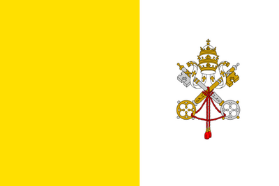 Vatikāna karogs ir ar dzeltenu un baltu krāsu joslām. Baltajā joslā attēlotas divas krusteniski saliktas atslēgas, viena zelta un otra sudraba krāsā, un tās sasietas ar sarkanu virvi. Virs atslēgām novietota tiāra, pāvesta kronis. Kvadrātveidīgais karogs radīts 1929. gadā, kad Laterānā tika noslēgts līgums, kas noteica Vatikāna pilsētvalsts neatkarību. Radiovaticana.va Foto: wikipedia.org |