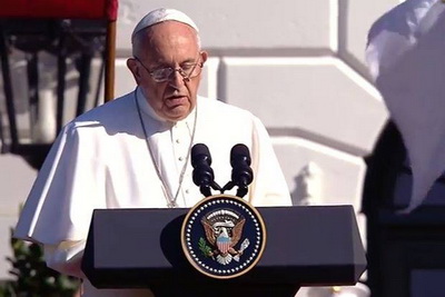 Lidmašīna nolaidās Vašingtonas Andrews militārajā lidostā. Francisku sagaidīja ASV prezidents Baraks Obama un viceprezidents Džo Baidens ar ģimenēm, Baznīcas pārstāvji un jaunieši no katoļu skolām. Pēc neoficiālās sagaidīšanas ceremonijas pāvests ar Fiat500 automašīnu devās uz Vašingtonas apustulisko nunciatūru, kas ir viņa uzturēšanās vieta vizītes laikā. Trešdien, 23. septembrī, pulksten 9.15 (plkst. 16.15 pēc Latvijas laika) Baltā nama pagalmā notika oficiālā sagaidīšanas ceremonija. Uz tikšanos ar pāvestu ieradās aptuveni 20 tūkstoši amerikāņu. Viesu vidū bija arī kardināli, bīskapi, priesteri, kā arī dažādu ekleziālo institūciju pārstāvji. „Kā imigrantu ģimenes dēls, es priecājos par iespēju apmeklēt valsti, ko veidojušas šādas ģimenes. Vizītes laikā man būs gods uzrunāt abas Kongresa palātas, lai kā brālis paustu atbalstu cilvēkiem, kuri ir aicināti veidot šīs tautas politisko nākotni. Es ieradīšos arī Filadelfijā, lai piedalītos VIII Pasaules ģimeņu saietā, lai mūsdienu civilizācijas vēstures kritiskajā brīdī svinētu un atbalstītu laulības un ģimenes institūciju”, sacīja pāvests. Viņš uzsvēra, ka brīvība ir vislielākā dāvana kāda pieder Amerikai, un visi tās pilsoņi ir aicināti to sargāt. Svētais tēvs runāja arī ekoloģiskajiem jautājumiem. Klimata pārmaiņu radītās problēmas nedrīkst novelt uz nākamo paaudžu pleciem. Visi esam aicināti rūpēties par „kopīgo māju”, piebilda Francisks. Trešdienā Svētais tēvs tiksies arī ar amerikāņu bīskapiem un Vašingtonas Vissvētākās Jaunavas Marijas Bezvainīgās Ieņemšanas sanktuārijā vadīs dievkalpojumu, kura laikā pasludinās par svētu XVIII gadsimta spāņu misionāru un Kalifornijas evaņģelizētāju Huniperu Serru. 24. septembrī Francisks teiks uzrunu ASV Kongresā, bet dienu vēlāk uzstāsies ar runu ANO Ģenerālajā asamblejā. 25. septembrī viņš ieradīsies Filadelfijā, lai piedalītos Pasaules ģimeņu saietā. 23. septembrī pulksten 10 pēc vietējā jeb 17 pēc Latvijas laika Baltā nama Ovālajā kabinetā pāvests Francisks tikās ar ASV prezidentu Baraku Obamu. Pēc privātas sarunas notika dāvanu apmaiņa. Tajā pašā laikā Vatikāna valsts sekretārs, kardināls Pjetro Parolins tikās ar ASV valsts sekretāru Džonu Keriju. Pēc tikšanās ar ASV prezidentu pāvests devās uz Vašingtonas Svētā Mateja katedrāli, kur tikās ar amerikāņu bīskapiem. Šajā dievnamā 1963. gada 25. novembrī notika prezidenta Džona Kenedija bēru dievkalpojums. Tur 1979. gada 6. oktobrī Euharistiju svinēja pāvests Jānis Pāvils II. Šogad katedrāle atzīmē 175 gadu jubileju. Pāvestu Francisku sagaidīja Vašingtonas arhibīskaps, kardināls Donalds Vuerls. 23. septembra vēlā pēcpusdienā (plkst. 23 pēc Latvijas laika) Vašingtonas nacionālajā sanktuārijā pāvests vadīs kanonizācijas dievkalpojumu, kurā svēto kārtā iecels spāņu franciskāni Huniperu Serru. Radiovaticana.va Skatīties YouTube vietnē