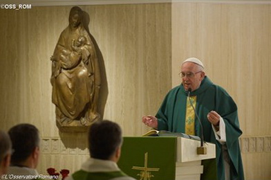 Vadoties pēc šī lasījuma, Francisks kavējās pārdomās par to ļaužu uzvaru, kurus vajāja vienveidīgas domas piekritēji. Dieva tauta svinēja svētkus un līksmoja, jo bija atradusi savu identitāti. „Svētki ir lieta, uz ko pasaulīgums nav spējīgs,” sacīja pāvests. Lielākais, ko spēj pasaulīgais gars, ir mazliet izklaides, mazliet trokšņa, taču prieks izriet vienīgi no uzticības Derībai. Evaņģēlijā Jēzus no svētnīcas padzen tirgotājus, tiem sakot: „Ir rakstīts: mans nams būs lūgšanu nams. Savukārt, jūs to esat pārvērtuši par laupītāju bedri.” Pasaulīgais gars bija ieņēmis Dzīvā Dieva pielūgsmes vietu. „Taču tagad tas notiek citādā veidā,” teica pāvests: „Svētnīcas priekšnieki, augstie priesteri un Rakstu zinātāji mija dažādas mantas. Viņi bija ienākuši degradācijas procesā un aptraipījuši svētnīcu. Viņi bija aptraipījuši svētnīcu! Svētnīca ir Baznīcas ikona. Baznīca vienmēr tiks pakļauta pasaulīgā kārdinājumam un varas kārdinājumam. Tā nav vara, ko no tevis vēlas Jēzus! Jēzus nesaka: „Nē, to nedrīkst! Patrieciet viņu!” Viņš saka: „Jūs šo vietu esat pārvērtuši par laupītāju bedri!” Un tad, kad Baznīca ienāk šai degradācijas procesā, tad tas beidzas ļoti slikti. Ļoti slikti!” Pāvests norādīja uz korumpētības briesmām: „Baznīcā vienmēr pastāv korumpētības kārdinājums. Tas ir tad, kad Baznīca pieķeras un ir uzticīga nevis Kungam Jēzum – miera, prieka un pestīšanas Kungam, bet gan naudai un varai. Tas notiek šeit, šai Evaņģēlijā. Šie augstie priesteri, šie Rakstu zinātāji bija pieķērušies naudai, varai un bija aizmirsuši garu. Lai sevi attaisnotu un apliecinātu, ka ir taisnīgi, ka ir labi, viņi apmainīja Kunga brīvības garu ar stingrību. Un Jēzus Mateja Evaņģēlija 23. nodaļā runā tieši par šo viņu stingrību. Ļaudis bija pazaudējuši Dieva izjūtu, bija pazaudējuši arī prieka un slavēšanas izjūtu. Tāpat kā Vecās Derības gadījumā, viņi neparata slavēt Dievu, jo bija pieķērušies naudai un varai, kas ir pasaulīguma forma.” Rakstu zinātāji un priesteri uz Jēzu dusmojās: „Jēzus padzina no svētnīcas tos, kuri veica tur darījumus, Viņš padzina afēristus. Taču augstie priesteri un Rakstu zinātāji ar viņiem bija saistīti. Tā bija „svētā mafija”! Evaņģēlijā lasām spēcīgus vārdus: „Augstie priesteri un Rakstu zinātāji Jēzu tīkoja nonāvēt, bet nezināja, kā to izdarīt, jo visa tauta aizturētu elpu Viņā klausījās.” Jēzus spēks bija Viņa vārdi, Viņa liecība, Viņa mīlestība. Un tur, kur ir Jēzus, nav vietas pasaulīgumam, nav vietas korumpētībai! Tā ir visu mūsu cīņa, tā ir Baznīcas cīņa ik dienas: vienmēr ar Jēzu, vienmēr ar Jēzu, vienmēr gatavi uzklausīt Viņa vārdus un nekad nemeklējot drošību tur, kur atrodas citam piederošas lietas. Jēzus mums ir teicis, ka nav iespējams kalpot diviem saimniekiem: Dievam un bagātībām, Dievam un varai.” Homīlijas noslēgumā pāvests aicināja lūgties par Baznīcu, atcerēties daudzos mūsdienu mocekļus, kuri tāpēc, lai neiekristu šai pasaulīguma garā, vienveidīgas domas un apostāzes garā, cieš un mirst. Pāvests norādīja, ka šodien Baznīcā ir vairāk mocekļu nekā pirmajos tās laikos. Svētais tēvs aicināja padomāt par viņiem, piebilstot, ka tas mums nāks par labu. Visbeidzot, Francisks mudināja lūgt žēlastību nekad, nekad neiekrist šai degradācijas procesā pretim pasaulīgumam, kas ved pie pieķeršanās naudai un varai. Radiovaticana.va Foto: L'Osservatore Romano |