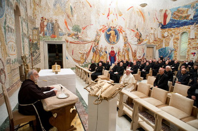 Kā īstenot aicinājumu uz svētumu un kāpēc mums jābūt svētiem? Sprediķotājs sniedza atbildes uz šiem jautājumiem, balstoties uz Svēto Rakstu Veco un Jauno Derību, un Vatikāna II koncila dogmatisko konstitūciju par Baznīcu Lumen gentium. Kā jau teikts iepriekš, tā kā šogad aprit 50 gadi kopš noslēdzās Vatikāna II koncils, kapucīnu tēvs Adventa un Lielā gavēņa laika pārdomām izvēlējās ielūkoties četrās tā konstitūcijās: par Baznīcu, Liturģiju, Dieva Vārdu un Baznīcu mūsdienu pasaulē, meklējot, kā koncila dokumenti var mums palīdzēt padziļināt savu ticību. Viņš arī norādīja, ka pastāv ļoti cieša saikne starp žēlsirdības tematu un Vatikāna II koncilu. Izcelt žēlsirdību nenozīmē aizmirst taisnīgumu. Šīs abas Dieva īpašības nav savstarpējā pretrunā. Runājot par svētumu, tēvs Kantalamessa atzina, ka šis temats nereti izraisa cilvēkos bailes. Tomēr svētums nesaistās ar kaut kādiem ārkārtējiem fenomeniem, bet ar ikdienas dzīvi. Tas ir sasniedzams visiem cilvēkiem. Ticīgie ir izvēlēti, lai būtu svēti un nevainojami tuvākmīlestībā (sal. Ef 1, 4). Svētuma „sēdeklis” vispirms ir mūsu sirds. Būt svētam nozīmē ne tik daudz būt no kaut kā šķirtam (pat ja tas, protams, ietver sevī brīvību no grēka un ļaunā), kā būt vienotam ar Jēzu Kristu. Kristietis piedalās paša Dieva svētumā. Dzīvot Kristū nozīmē dzīvot Svētajā Garā. Svētums, no vienas puses, ir Dieva dāvana, un svētuma ceļš ir ticības un sakramentu ceļš. No otras puses, svētums izriet arī no mūsu pašu pūliņiem un labajiem darbiem. Sprediķotājs atgādināja, ka ar labajiem darbiem nevajadzētu domāt tikai atlaidas, svētceļojumus vai dažādus dievbijības aktus, bet, galvenokārt, baušļu ievērošanu un, sevišķi, tuvākmīlestības baušļa ievērošanu. Apustulis Jēkabs raksta, ka ticība bez darbiem ir mirusi (sal. Jēk 3, 26). No Vatikāna II koncila mācības (sal. LG 40) izriet, ka ticība un darbi nav pretrunā, bet ir savstarpēji saistīti. Kristus ir dāvana, ko esam aicināti pieņemt ticībā, un paraugs, kuram mums jāseko ar savu dzīvi – sacīja tēvs Ranjero Kantalamessa. Uz jautājumu, kāpēc jābūt svētiem, sprediķotājs atbildēja: Tāpēc ka Dievs ir svēts. Viņš atgādināja, ka svētums nav kaut kas uzspiests vai uz mūsu pleciem uzlikta nasta, bet privilēģija. Tas ir vislielākais gods. Savā ziņā tas ir pienākums, kas izriet no tā, ka mēs esam apveltīti ar Dieva bērnu cieņu. Tas ir pienākums, kas būtiski saistās ar mūsu kā radības stāvokli. Cilvēkam jābūt svētam, lai īstenotu savu dziļāko identitāti, kas nozīmē to, ka viņš ir radīts pēc Dieva attēla un līdzības – skaidroja tēvs Kantalamessa. Svēto Rakstu nozīmē cilvēks nav tikai „racionāls dzīvnieks”, proti, tas, par ko viņam ir noteikts būt kopš dzimšanas, bet gan tas, par ko viņš ir aicināts kļūt, izmantojot savu brīvību un paklausot Dievam. Kas no tā izriet? Ja mēs esam aicināti būt svēti jeb ja mūsu aicinājums ir svētums, tad kļūst skaidrs, ka kļūsim īsti cilvēki, spēsim sevi īstenot un būsim laimīgi un piepildīti tādā mērā, kādā būsim svēti. Pretējā gadījumā, piedzīvosim neveiksmi. Kapucīnu tēvs norādīja, ka svētā pretstats ir nevis grēcinieks, bet neveiksminieks. Mēs varam piedzīvot savā dzīvē daudzas neveiksmes, mēs varam dažnedažādi krist, bet tie ir relatīvi kritieni, kas neiedragā būtisko. Turpretī netiekšanās pēc svētuma ir radikāla neveiksme, jo šis fakts saistās ne tikai ar mūsu darbību, bet ar mūsu esmi. Māte Terēze uz kāda žurnālista jautājumu, par to, kā viņa uztver to, ka visi viņu uzskata par svētu, atbildēja: „Svētums nav greznība, bet ir nepieciešamība.” Balstoties uz filozofa Paskāla teikto, redzam, ka daļa cilvēku rūpējas tikai par materiāliem labumiem – bagātību krāšanu, ķermeņa skaistumu vai varu, citi domā, ka cilvēka lielums mērāms viņa prāta spējās, bet salīdzinoši tikai nedaudzie nopietni pievēršas trešajam līmenim, proti, svētumam. Šis līmenis ir visaugstākais, jo tas saistās ar mūžību un ļauj cilvēkam sasniegt to, kas viņā ir cēlākais, proti, patiesu brīvību. Tas, vai mēs piedzimstam stiprāki vai vājāki, skaistāki vai neglītāki, bagāti vai nabagi, nav atkarīgs no mums, turpretī, no mums būs atkarīgs tas, vai mēs būsim godīgi vai negodīgi, labi vai slikti, svēti vai grēcinieki. Ģeniālais mūziķis Guno ir sacījis, ka „svētuma pilienam ir lielāka nozīme nekā ģenialitātes okeānam”. Lai būtu svēti, mums tomēr nav jāatsakās no pirmajām divām pakāpēm, tas ir, ne no materiālajām vajadzībām, ne prāta attīstīšanas – piebilda tēvs Kantalamessa. Uz svētumu ir aicināti visi cilvēki – bagātie un nabagi, izglītotie un neizglītotie. Baznīcas dzīvē šis aicinājums īpaši atskan, piemēram, liturģiskā gada sākumā vai, runājot par šodienu, Dieva žēlsirdībai veltītā jubilejas gada sākumā. Sprediķotājs ieteica, lai mēs, ejot šo ceļu, ik pa laikam uzdotu sev šādus jautājumus: Kāpēc es esmu kristietis? Kāpēc es esmu priesteris vai reliģiskā ordeņa loceklis? Vai es īstenoju savu aicinājumu? Vai es daru to, kādēļ esmu šajā pasaulē? Jaunajā Derībā ir aprakstīta atgriešanās, ko varētu dēvēt par pamošanos jeb atgriešanos no remdenuma. Tā kā tu neesi ne auksts, ne karsts… Atgriezies un kļūsti atkal dedzīgs! (sal. Atkl 3, 15 u.sek.). Kā ir ar mani? Vai es alkstu un slāpstu pēc svētuma, vai nolaižu rokas un slīgstu remdenumā? – jautāja pr. Kantalamessa. Radiovaticana.va Foto: Cantalamessa.org |