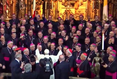 Divas stundas pirms Svētā tēva ierašanās lidostas laukumā valdīja prieks un entuziasms, kas pieauga ar katru brīdi. Apkārt vietai, kur bija paredzēts apstāties lidmašīnai, tika izveidotas tribīnes, kas līdzinājās mazam stadionam. Uz speciāli šim gadījumam uzceltas skatuves rībēja deju soļi un skanēja mūzika. Ar krāšņo uzvedumu meksikāņi vēlējās parādīt savas zemes vēstures un kultūras skaistumu. Brīdī, kad lidmašīnas durvīs parādījās pāvests, viss izmainījās. Sagaidītāju pūlī atskanēja nerimstoši aplausi un saucieni. Nokāpis no lidmašīnas trapa, Francisks sasveicinājās ar Meksikas prezidentu Enriko Penju Njeto un viņa dzīvesbiedri. Lidostā sapulcējušos meksikāņu rokās bija balti lakatiņi un mobilie tālruņi, ar kuru gaismiņām tika sagaidīts un sveikts augstais viesis. Jaunieši skaļi sauca: «Svētī mūs!» Pāvests, protams, nevarēja nedzirdēt viņu lūgumu. Francisks negaidīti nokāpa no sarkanā paklāja un pienāca pie tribīnēm. Viņš ik pa brīdim apstājās, lai sasveicinātos, noskūpstītu bērnus un svētītu visus klātesošos. Viens no dejotājiem pāvestam pasniedza skaistu, zelta ornamentiem izrotātu melnu sombrero cepuri. Neformālā sagaidīšana ilga aptuveni 40 minūtes. Neraugoties uz vairāk nekā divpadsmit stundu ilgo lidojumu no Romas uz Havanu un vēlāk trīs stundu ilgo lidojumu no Havanas uz Mehiko, pāvests izskatījās priecīgs un apmierināts. Bez šaubām, Amerika ir viņa mājas, kurās ļoti labi jūtas. Pēc īsas sarunas ar Meksikas prezidentu pāvests iekāpa automašīnā, lai dotos uz Apustulisko nunciatūru, kas ir viņa apmešanās vieta vizītes laikā. Tur divas reizes viesojies arī svētais Jānis Pāvils II. Atgādinām, ka diplomātiskās attiecības starp Svēto Krēslu un Meksiku nodibinātas 1992. gada 21. septembrī. 13. februārī pulksten 9.30 pēc vietējā (17.30 pēc Latvijas) laika Mehiko Nacionālajā pilī, ko rotā Djego Riveras freskas, notika oficiālā sagaidīšanas ceremonija. Vienā no pils zālēm Francisks tikās ar Meksikas prezidentu Enriko Penju Njeto. Pēc privātas sarunas prezidents iepazīstināja pāvestu ar savas ģimenes locekļiem. Nacionālās pils iekšpagalmā bija sapulcējušies 1200 cilvēku: valdības, diplomātiskā korpusa un kultūras pasaules pārstāvji. Francisks atgādināja, ka Meksikā ieradies kā miera svētceļnieks, žēlsirdības misionārs un arī kā dēls, kurš vēlas apliecināt cieņu mātei, Gvadalupes Dievmātei. Meksika ir liela valsts, kas lepojas ar bagātīgiem dabas resursiem. Ģeogrāfiskā stāvokļa dēļ tā ir kļuvusi par dažādu kultūru krustcelēm. Meksika ir zeme ar dziļām kristietības saknēm. Pāvests norādīja, ka Meksikas galvenā bagātība ir jaunieši. Šāda tauta spēj atjaunoties, pārveidoties un ar cerību raudzīties nākotnē. Sestdienas, 13. februāra vēlā priekšpusdienā, pulksten 19 pēc Latvijas laika, Francisks ar automašīnu devās uz Konstitūcijas laukumu, kur atrodas sena, piecu jomu plaša katedrāle. To rotā divi vairāk nekā sešdesmit metru augsti torņi. Mehiko arhidiecēzes katedrālē pāvests tikās ar Meksikas bīskapiem. Kad Latvijā būs jau pusnakts, bet Meksikā agra pēcpusdiena (plkst. 16), Francisks ieradīsies Gvadalupes Dievmātes sanktuārijā. RADIOVATICANA.VA |