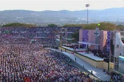 Francisks uzklausīja vairāku ģimeņu liecības, kas garīgā veidā viņu aizveda šo ģimeņu mājās, atvēra durvis un ļāva sēdēt pie viņu „galda”, daloties maizē, ikdienas priekos un grūtībās, cerībās un sapņos. Pāvests atzinās, ka viņu iespaidojuši kāda liecību sniedzēja vārdi „piešķirt drosmi”. Piešķirt drosmi dzīvei, ģimenei, draugiem un arī šīs tikšanās dalībniekiem. Francisks izteica pārliecību, ka to pašu Svētais Gars vēlas darīt ticīgo vidū – „piešķirt drosmi”, dāvāt stimulu, lai varētu turpināt pūliņus ģimenes labā, sapņot un veidot dzīvi, kurā tuvi ir tādi jēdzieni kā „māja” un „ģimene”. Svētais tēvs atgādināja, ka jau kopš senseniem laikiem Dievs Tēvs ir piešķīris drosmi dažādās situācijās. Kad likās, ka Ēdenes dārzā viss būs zaudēts, Viņš piešķīra drosmi Ādamam un Ievai, apliecinot, ka vēl ir izredzes. Kad Izraeļa tauta domāja, ka nav vairs jēgas šķērsot tuksnesi, Dievs Tēvs tiem piešķīra drosmi, nosūtot no debesīm mannu. Savukārt, kad piepildījās laiks, Viņš piešķīra drosmi cilvēcei, uz visiem laikiem dāvādams tai savu Dēlu. „Tādā pašā veidā mēs visi, kas atrodamies šeit, esam guvuši pieredzi, ka dažādos brīžos un dažādās formās Dievs Tēvs ir piešķīris drosmi mūsu dzīvei,” teica pāvests. Varam jautāt – kāpēc? „Tāpēc, ka Viņš neprot rīkoties citādi, kā vien mūs mīlēt un piešķirt drosmi, likt mums vienmēr iet uz priekšu,” skanēja Svētā tēva atbilde. Viņš paskaidroja, ka tas ir tāpēc, ka Dieva vārds ir „mīlestība”. Viņa vārds ir dāvana bez nosacījumiem, viņa vārds ir veltīšanās, Viņa vārds ir žēlsirdība. To visu Viņš ir ļāvis pazīt caur savu Dēlu Jēzu, kurš savu dzīvi līdz pat nāvei atdeva par to, lai būtu iespējama Dieva valstība. „Šai valstībai,” sacīja pāvests, „ir ģimenes garša” – garša, kas izriet no dalīšanās. Francisks atzīmēja, ka šodien dažādās jomās redzam, kā ģimene tiek novājināta, pakļauta diskusijām. Pastāv arī uzskats, ka ģimenes modelis ir novecojis un ka tam nav vietas sabiedrībā, kas modernisma iespaidota, dod priekšroku izolācijai. Sabiedrībā, kas sevi sauc par brīvu, demokrātisku un suverēnu, parādās ideoloģiskas kolonizācijas modeļi, kas grauj pašu tās pamatu – ģimeni. Francisks atzina, ka dzīvot ģimenes dzīvi ne vienmēr ir viegli. „Tomēr,” teica Svētais tēvs, „dodu priekšroku ievainotai ģimenei, kas katru dienu cenšas atjaunot mīlestību, ģimenei, kas cenšas sākt visu no jauna, nekā patmīlīgai ģimenei, kas tiecas pēc ērtībām un luksusa lietām, un kurā nav vietas bērniem, jo vecāki grib ceļot, iegādāties villu un tā tālāk. Dodu priekšroku ģimenei, kuras „seja” ir pagurusi no uzupurēšanās citu labā, nekā ģimenei ar izskaistinātu „seju”, bet kura nepazīst maigumu un līdzjūtību.” Pāvests atgādināja, ka meksikāņiem ir viņu māte – Gvadalupes Dievmāte, kura gatava aizstāvēt ģimenes, aizstāvēt tautas nākotni un piešķirt tai drosmi, dāvājot savu Dēlu. Francisks aicināja visus klātesošos sadoties rokās un kopā noskaitīt lūgšanu „Esi sveicināta, Marija!” Viņš aicināja neaizmirst arī svēto Jāzepu – kluso, taču vienmēr modro strādnieku, kas vienmēr bija gatavs parūpēties par ģimeni. Ģimenes atmosfērā Francisks pamudināja klātesošos laulātos atjaunot savus laulības solījumus, bet saderinājušos – lūgt uzticīgas un mīlestības pilnas ģimenes žēlastību. RADIOVATICANA.VA |