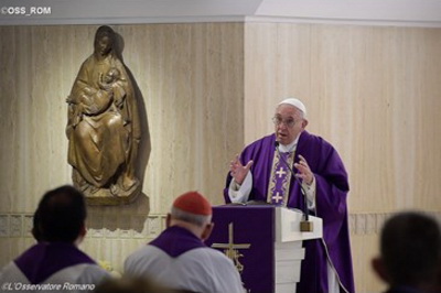 Jēzus runā ar likuma zinātājiem un apgalvo, ka Ābrams „priecājās cerībā redzēt Viņa dienu”. Pāvests Francisks atsaucās uz Evaņģēlija lasījumu, lai uzsvērtu, cik svarīga kristieša dzīvē ir cerība. Ābramam bija savi kārdinājumi ceļā uz cerību, bet viņš ticēja un paklausīja Kungam. Tā viņš devās ceļā uz apsolīto zemi. Pāvests norādīja, ka pastāv, tātad, „cerības dzīpars”, kas caurvij un kopā satur visu pestīšanas vēsturi, un ir prieka avots. Svētais tēvs teica: „Šodien Baznīca runā par cerības prieku. Pirmajā Mises lūgšanā lūdzām Dievam žēlastību, lai Viņš sargā Baznīcas cerību, lai tā „nepazūd”. Un Pāvils, runājot par mūsu tēvu Ābramu, saka: „Ceriet pret katru cerību!” Kad cilvēkam trūkst cerības, tad pastāv tikums, kas ved tevi uz priekšu, pazemīgs, vienkāršs, bet tas dod tev prieku, dažreiz lielu prieku, dažreiz tikai mieru, bet tu vari būt drošs, ka šī cerība nepievils. Cerība nepieviļ!” Francisks atzīmēja, ka šis Ābrama prieks, šī cerība aug vēsturē. Dažreiz tā paslēpjas un to neredz, citreiz tā par sevi liek zināt atklāti. Francisks citēja mātes cerībās nonākušās Elizabetes piemēru. Viņa gavilēja priekā, kad to apmeklēja māsīca Marija. „Tas ir Dieva klātbūtnes prieks, kurš iet kopā ar savu tautu,” teica Francisks. Viņš atgādināja, ka tad, kad ir prieks, ir arī miers. Tas ir cerības tikums – no prieka līdz mieram. Svētais tēvs vēlreiz apgalvoja, ka cerība nepieviļ nekad, tai skaitā arī verdzības brīžos, kad Dieva tauta atradās svešā zemē. Šis caurvijošais „cerības dzīpars” sākas ar Ābramu. „Dievs runā uz Ābramu” un beidz ar Jēzu. Francisks pakavējās pie cerības raksturojuma. „Ja var teikt, ka mums ir ticība un žēlsirdība, tad grūtāk ir atbildēt uz jautājumu par cerību,” atzina pāvests. „Kad tiek jautāts, „Vai tev ir cerība? Vai tev ir cerības prieks?” tad var dzirdēt atbildi: „Bet, tēvs, es nesaprotu, paskaidrojiet man lūdzu!” Cerība ir tas pazemīgais tikums, tas tikums, kas rit zem dzīvības ūdens, bet kurš mūs atbalsta, lai mēs nenoslīktu daudzās grūtībās, lai nepazaudētu vēlēšanos atrast Dievu, atrast to brīnišķīgo vaigu, kuru visi kādu dienu redzēsim. Tā ir cerība.” Svinot rīta Misi, pāvests sacīja, ka šodien būs skaista diena, lai par to padomātu – par to, ka Dievs, kurš sauca Ābramu un lika viņam iziet no savas zemes, nezinot, uz kurieni tas dosies, ir tas pats Dievs, kas iet krusta nāvē, lai izpildītu doto apsolījumu: „Tas ir tas pats Dievs, kas piepildoties laikam, liek, lai šis apsolījums kļūst visiem par realitāti. Un tas, kas vieno to pirmo brīdi ar šo pēdējo brīdi, ir cerības dzīpars. Tas ir tas, kas katru brīdi vieno manu kristīgo dzīvi ar mūsu kristīgo dzīvi, lai vienmēr ietu uz priekšu. Lai arī esam grēcinieki, ir jāiet uz priekšu. Tā ir cerība un tas ir tas, kas dod mums mieru smagos brīžos. Vistumšākajos dzīves brīžos ir cerība. Cerība nepieviļ, tā pastāv vienmēr – klusa, pazemīga, bet stipra.” Radiovaticana.va Foto: Osservatore Romano |