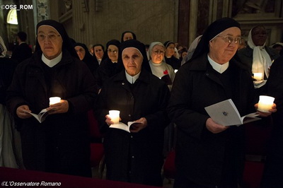 Francisks uzrunā atzīmēja, ka uzticība šobrīd tiek pakļauta pārbaudījumiem. Aiziešana no reliģiskajiem ordeņiem un kongregācijām liek raizēties. “Ir tiesa,” sacīja pāvests, “ka daži tos atstāj korektas rīcības vadīti, jo pēc nopietnām pārdomām ir sapratuši, ka paaicinājuma tiem nav bijis. Taču, citi, laikam ritot, zaudē uzticību, pie tam, daži tikai nedaudzus gadus pēc mūža svētsolījumu salikšanas.” Kā pirmo faktoru, kas neļauj saglabāt uzticību, Francisks nosauca sociālo un kultūras kontekstu, kurā dzīvojam. Esam iegrimuši tā dēvētajā “fragmentārajā, provizoriskajā kultūrā” un kļuvuši modes vergi. Šī kultūra ved pie nepieciešamības turēt atvērtas “sāndurvis”, pa kurām iziet, lai izmantotu citas iespējas, tā vairo patēriņu un aizmirst par vienkāršas dzīves skaistumu, bieži vien izraisot milzīgu eksistenciālu tukšumu. Ir izplatījies arī spēcīgs praktisks relatīvisms, saskaņā ar kuru par visu tiek spriests pēc pašrealizācijas, kura bieži vien ir pretrunā ar Evaņģēlija vērtībām. “Dzīvojam sabiedrībā,” turpināja pāvests, “kur ekonomiskās regulas aizvieto morālās, kur tās diktē likumus un uzspiež savas atsauces sistēmas, apejot dzīvības vērtības, sabiedrībā, kur naudas un peļņas diktatūra aizstāv tādas eksistences vīziju, kurā tas, kurš nenes peļņu, tiek atmests.” Francisks uzsvēra, ka šādā situācijā vispirms ir jākļūst evaņģelizētam pašam, lai vēlāk evaņģelizētu citus. Šim sociālkultūras faktoram pāvests pievienoja arī citus, tai skaitā sarežģīto jauniešu pasauli, kas vienlaikus ir ļoti bagāta un kas met daudzus izaicinājumus. Svētais tēvs uzsvēra, ka tas nav jāuztver negatīvi. Viņš atzīmēja, ka netrūkst dāsnu, solidāru jauniešu, kas ir iesaistījušies reliģiskajā un sociālajā darbā, jauniešu, kas meklē patiesu garīgu dzīvi, jauniešu, kuri ir izslāpuši pēc kaut kā cita, nekā tā, ko piedāvā pasaule. Taču, arī starp jauniešiem ir daudzi pasaulīgās loģikas upuri, ko sintētiskā veidā var saukt par panākumu meklētājiem par katru cenu, par vieglas peļņas un vieglu izklaižu tīkotājiem. Šī loģika pavedina daudzus citus viņu vienaudžus. Svētais tēvs rosināja palikt jauniešu tuvumā, cenšoties tos aizraut ar Evaņģēlija prieku un piederību Kristum. Trešais faktors, ko pieminēja pāvests, nāk no konsakrētās dzīves iekšienes, kur blakus lielam svētumam, netrūkst sliktas liecības situāciju, kas kaitē uzticībai. Šādu situāciju vidū ir rutīna, pagurums, struktūru pārvaldes smagums, iekšēja šķelšanās, varas meklējumi, pasaulīgs institūtu pārvaldīšanas veids, kalpošana autoritātēm, kas dažreiz kļūst par autoritārismu un citreiz par lietu pašplūsmu. “Ja konsakrētajā dzīvē vēlamies saglabāt tās pravietisko misiju un pievilcību, un turpinātu būt par uzticības skolu “tuviem un tāliem” (sal, Ef 2,17), tad ir jāsaglabā Jēzus centralitātes svaigums,” sacīja Francisks. Īpaši viņš uzsvēra nepieciešamību rādīt Kristum sekotāju skaistumu, kuri prot izstarot cerību un prieku. Tieši cerību un prieku pāvests nosauca par tiem, kas liecina par kopienas iekšējo saturu, par tās virzītājspēku. Īpašā veidā Svētais tēvs aicināja rūpēties par brālīgumu kopienā. To vairo kopienas lūgšana, Vārda lasījumi, aktīva dalība Euharistijas un Izlīgšanas sakramentos, brālīgs dialogs un godīga saziņa kopienas locekļu starpā, brālīgs aizrādījums nepieciešamības gadījumā un pienākumu sadale. Tas viss ir jāpavada ar daiļrunīgu vienkāršas dzīves liecību blakus nabadzīgajiem un ar misiju, kas priekšroku dod eksistences perifērijām. Atsaucoties uz svētā Pāvila 2. vēstuli korintiešiem (4,7), pāvests sacīja, ka garīgais paaicinājums, tāpat kā pati ticība, ir dārgmanta, ko nesam māla traukos. Tāpēc tā ir jāglabā gluži tāpāt, kā glabājam dārgas lietas, lai neviens to nenozog un lai laikam ritot, tā nepazaudē savu skaistumu. Francisks katru konsakrēto personu aicināja ar Kunga žēlastību uzņemties atbildību pirmajā personā, lai rūpētos par savu cilvēcisko, garīgo un intelektuālo izaugsmi, un tai pašā laikā dzīvu glabātu paaicinājuma liesmu. Tas nozīmē, ka nedrīkstam atraut skatienu no Kunga, vienmēr esot nomodā pār to, vai ejam saskaņā ar Evaņģēlija loģiku un nepadodamies pasaulīgajiem kritērijiem. “Bieži vien,” teica pāvests, “lielā neuzticība sākas no sīkajiem maldiem un neuzmanības.” Runājot par uzticību un aiziešanu no konsakrētās dzīves institūtiem, pāvests rosināja lielu uzmanību veltīt garīgajai pavadībai. Viņš norādīja, ka ir vajadzīgs sagatavot kvalificētus šīs kalpošanas speciālistus. Pie tam, Francisks uzsvēra, ka garīgā pavadība ir laju harizma – neraugoties uz to, ka tā piemīt priesteriem un reliģiskajām māsām. Laju harizma tādā nozīmē, ka garīgais pavadītājs, vai pavadītāja ir Dieva cilvēki, kuriem piemīt dzīves gudrība. “Ir vajadzīgi brāļi un māsas, kuri būtu Dieva ceļu eksperti, lai tie spētu darīt to pašu, ko JēŠzus darīja ar Emmausas mācekļiem, proti, pavadītu tos dzīves ceļā un tiem, kas zaudējuši virzienu, no jauna iedegtu ticības un cerības liesmu caur Vārdu un Euharistiju,” piebilda pāvests. Viņš atzīmēja, ka ne mazums paaicinājumu tiek pazaudēti tikai tāpēc, ka trūkst vērtīgu garīgo pavadītāju. Uzrunas beigās pāvests visiem konsakrētajiem ļaudīm novēlēja nemitīgu Svētā Gara palīdzību un deva tiem savu apustulisko svētību. Radiovaticana.va Foto: L'Osservatore Romano |