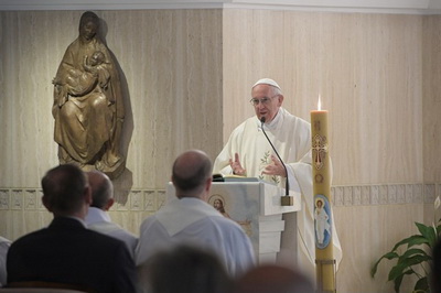 Francisks tajā komentēja dienas lasījumu par to, kā augšāmcēlies Jēzus sarunājas ar Pēteri ezera krastā, tur, kur apustulis tika aicināts. “Tā ir mierīga saruna, nesteidzīga saruna starp draugiem, kas notiek Kunga augšāmcelšanās gaisotnē” atzīmēja pāvests. Jēzus uztic Pēterim savas avis, trīs reizes prasot, vai viņš Viņu mīl. Francisks norādīja, ka Jēzus izvēlas vislielāko grēcinieku starp saviem apustuļiem, jo visi pārējie aizbēga, bet Pēteris Jēzu noliedza, sakot, ka Viņu nepazīst. Tātad, tiek izvēlēts “vislielākais grēcinieks”, lai ganītu Dieva tautu. “Tas mums liek padomāt,” sacīja pāvests. Jēzus prasa Pēterim ganīt Viņa avis ar mīlestību: “Neganīt vis ar augstu izslietu galvu, ka to darītu tāds, kurš uzkundzējas. Nē! Ganīt ar pazemību, ar mīlestību, kā to darīja pats Jēzus. Tā ir misija, ko Jēzus uztic Pēterim. Jā, tādam, kurš grēko, kurš kļūdās. Pat tik daudz, ka tieši pēc šīs sarunas, Pēteris pieļauj kļūdu. Viņš ļaujas kārdinājumam un saka Kungam: “Bet, kur tiks sūtīts tas otrs māceklis, ko darīs viņš?” Taču ar mīlestību, savu kļūdu, savu grēku vidū... ar mīlestību! “Šīs avis nav tavas avis, tās ir manējās. Mīli tās! Ja tu esi mans draugs, tev ir jābūt arī šo avju draugam.” Kad Pēteris noliedza Jēzu augstā priestera kalpones priekšā, viņš to darīja droši, tikpat droši kā tad, kad Viņu atzina: “Tu esi Kristus, dzīvā Dieva Dēls!” Pāvests atgādināja par Jēzus skatienu, raugoties uz Pēteri, kurš Viņu bija tikko noliedzis. “Apustulis, kurš bija spējīgs droši noliegt, spēj arī arī rūgti raudāt,” sacīja Francisks. “Un tad visa dzīve, kas tika pavadīta kalpjot Kungam, beidzas tāpat kā Kungam: krustā. Taču Pēteris ar to nelepojas, sak: “Miršu gluži tāpat kā mans Kungs!” Nē! Viņš prasa: “Lūdzu, sit mani krustā ar galvu uz leju, lai vismaz redz, ka neesmu Kungs, bet kalps.” Tas ir tas, ko varam gūt no šīs sarunas, šīs tik skaistās, tik mierīgās un nopietnās, tik draudzīgās un šķīstās sarunas. Lai Kungs mums vienmēr dod žēlastību dzīvē iet ar noliektu galvu – ar galvu, kas pavērsta augšup cieņas dēļ, ko mums dod Dievs, bet noliekta tāpēc, ka apzināmies sevi par grēciniekiem un to, ka vienīgais Kungs ir Jēzus, bet mēs esam kalpi.” Radiovaticana.va |