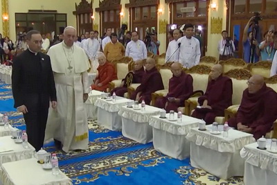 Francisks atzīmēja, ka šī tikšanās ir svarīga iespēja, lai atjaunotu un nostiprinātu draudzības saites un cieņu starp budistiem un katoļiem. Bez tam, tā ir iespēja apliecināt devumu mieram, cilvēka cieņas respektu un taisnīgumu pret katru sievieti un vīrieti. “Ne tikai Mjanmā, bet visā pasaulē cilvēkiem ir nepieciešama šī reliģisko līderu kopējā liecība,” teica pāvests. “Ja vienotā balsī apliecinām tādas nezūdošās vērtības, kā taisnība, miers un katra cilvēka cieņa, mēs dāvājam cerības vārdu,” piebilda Svētais tēvs. Pāvests atzīmēja, ka visos laikos cilvēce ir pieredzējusi netaisnības, konfliktu brīžus un nevienlīdzību starp tautām. Mūsdienās šīs grūtības šķiet sevišķi izteiktas. Lai arī sabiedrība ir sasniegusi lielu tehnoloģisko progresu un cilvēki visā pasaulē aizvien vairāk apzinās, ka tiem ir kopīgas cilvēciskās īpašības un liktenis, konfliktu, nabadzības un apspiestības rētas saglabājas joprojām un tās rada jaunas šķelšanās. Šo izaicinājumu priekšā Francisks aicināja budistus neatkāpties, jo pamatojoties uz abām reliģijām piemītošajām garīgajām tradīcijām, zinām, ka pastāv ceļš uz priekšu, ceļš, kas ved pie izdziedināšanās, savstarpējas sapratnes un cieņas. Tas ir ceļš, kas balstās uz līdzjūtību un mīlošu labsirdību. Pāvests izteica savu cieņu pret visiem cilvēkiem, kas Mjanmā dzīvo saskaņā ar budisma reliģiskajām tradīcijām. “Caur Budas mācību un tik daudzu mūku un mūķeņu liecību, šīs zemes ļaudīs ir ieaudzinātas tādas vērtības, kā pacietība, tolerance un cieņa pret dzīvību, kā arī garīgums, kas ir ļoti uzmanīgs un dziļi respektējošs pret dabisko vidi,” sacīja Mjanmas zemes viesis. Viņš piebilda, ka šīs vērtības ir būtiskas sabiedrības integrālai attīstībai, sākot jau ar vismazāko un visnozīmīgāko vienību, proti, ģimeni, un turpinoties ar attiecību viedošanu, kas cilvēkus tuvina citu citam. Tās ir attiecības, kas sakņojas kultūrā, etniskajā un nacionālajā piederībā, un visbeidzot mūsu kopējā cilvēciskumā. Patiesā tikšanās kultūrā šīs vērtības var stiprināt cilvēku kopienas un palīdzēt nest tik ļoti nepieciešamo gaismu plašākai sabiedrībai. Francisks teica, ka mūsdienu lielais izaicinājums ir palīdzēt cilvēkiem atvērties transcendentajam, spēt paskatīties sev dziļi iekšienē un sevi pazīt tiktāl, lai saredzētu saikni ar citiem cilvēkiem. Lai saprastu, ka neesam cits no cita izolēti. Lai būtu vienoti, ir jāpārvar visas nesapratnes, neiecietības, aizspriedumu un naida formas. Kā to izdarīt? Buda dod šādu padomu: “esi pārāks par nožēlojamo ar savu dāsnumu, esi pārāks par meli ar patiesību” (Dhammapada, XVII, 223). Līdzīgi skan lūgšana, kas tiek piedēvēta svētajam Asīzes Franciskam: “Kungs, dari mani par Tava miera instrumentu. Tur, kur ir ienaids, liec man sēt mīlestību. ... Tur, kur ir tumsa, lai es nesu gaismu, un kur ir bēdas, lai nesu prieku.” Pāvests novēlēja, lai pieminētajos vārdos ietvertā gudrība turpina iedvesmot visas pūles, kas veltītas pacietības un sapratnes veicināšanai, un lai dziedē ievainojumus, ko vairāku gadu laikā ir nesis konflikts, sašķeļot cilvēkus, kas pieder atšķirīgām kultūrām, etniskajām grupām un reliģiskajām pārliecībām. Šie pūliņi neattiecas tikai uz reliģiskajiem līderiem, bet uz visu sabiedrību kopumā. Tomēr, uz civilajiem un reliģiskajiem līderiem gulstas atbildība nodrošināt, lai katra balss tiktu uzklausīta, lai tiktu skaidri saprasti pašreizējā brīža izaicinājumi un lai stātos tiem pretim taisnības un savstarpējas solidaritātes garā. Francisks apliecināja, ka starp reliģiskajiem līderiem šai ziņā ir nepieciešama lielāka sadarbība un Katoliskā Baznīca ir gatava būt šādas sadarbības partnere. Uzrunas noslēgumā Svētais tēvs novēlēja, lai budisti un katoļi kopā iet pa savstarpējas sapratnes, taisnības un miera ceļu, lai plecu pie pleca strādā visu cilvēku labā, kas dzīvo Mjanmas zemē. Radiovaticana.va |