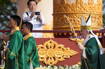 Trešdienas agrā rītā Francisks ieradās Jangonas sporta laukumā, kur notiek treniņi un sacensības futbolā, basketbolā, volejbolā, badmintonā, loka šaušanā un daudzos citos sporta veidos. Dievkalpojums sākās pulksten 8.30 pēc vietējā jeb 4.00 pēc Latvijas laika. Sprediķi viņš teica itāliešu valodā, kas tika tulkots birmiešu valodā. Daudzi ticīgie Jangonā ieradās no kalnainiem apvidiem, daži bija mērojuši ceļu kājām. «Esiet izlīguma un miera veicinātāji savās ģimenēs, kopienās un sabiedrībā! Lai nekad mums nepietrūkst gudrības atklāt Kristus brūcēs ievainojumu dziedināšanas avotu», – vēlēja pāvests. «Es ierados kā svētceļnieks, lai mācītos no jums», – viņš atzina. Skaidrojot trešdienai paredzēto Svēto Rakstu lasījumu, pāvests uzsvēra, ka Jēzus atklāj mums Dieva noslēpumu, un to dara nevis ar garām uzrunām, bet ar savas dzīves upurēšanu pie krusta. Balstoties tikai uz savu gudrību, mēs varam iekrist slazdā, varam pat zaudēt dzīves jēgu. Šādos brīžos vērts atcerēties, ka mūsu rokās ir ielikts kompass, kas rāda pareizo ceļa virzienu. Tas ir krustā piesistais Kungs. No krusta saņemam gudrību un gaismu, kas nāk no Dieva. No krusta saņemam dziedināšanas žēlastību. «Lai nekad mums nepietrūkst gudrības atklāt Kristus brūcēs ievainojumu dziedināšanas avotu», – teica pāvests. Francisks atzina, ka daudzi cilvēki sevī nes gan redzamās, gan neredzamās brūces. Cik bieži vardarbības un netaisnības priekšā gribam likt pasaulīgo gudrību. Uzskatām, ka zāles nāk no dusmām un atriebības. Tomēr atriebības ceļš nav Jēzus ceļš, – teica Svētais tēvs. No Kristus brūcēm izplūst Dieva žēlsirdības eļļa, kas dziedina visus ievainojumus. Turpinot uzrunu, pāvests teica: «Es zinu, ka Baznīca Mjanmā daudz dara, lai Dieva žēlsirdības dziedinošo eļļu saņemtu visi cilvēki, sevišķi trūkumcietēji. Skaidri redzams, ka pat ar ierobežotiem līdzekļiem daudzas kopienas nes Evaņģēlija gaismu dažādu tautību minoritātēm, nekad neuzspiežot, bet vienmēr aicinot un viesmīlīgi uzņemot. Neskatoties uz trūkumu un grūtībām, daudzi no jums sniedz konkrētu palīdzību nabagiem un cietošiem. Caur savu bīskapu, priesteru, konsekrēto personu un katehētu ikdienas rūpēm, kā arī caur Catholic Karuna Myanmar (Mjanmas Caritas) pašaizliedzīgo darbu un Pontifikālo misiju apvienību dāsno palīdzību, Baznīca šajā valstī palīdz daudziem vīriešiem, sievietēm un bērniem, neatkarīgi no viņu reliģiskās vai etniskās piederības. Varu apliecināt, ka vietējā Baznīca ir dzīva un vitāla Baznīca, ka Kristus dzīvo. Viņš ir kopā ar jums un ar citu kristīgo kopienu brāļiem un māsām. Aicinu jūs turpināt dalīties ar citiem gudrībā, ko paši esat saņēmuši, dalīties Dieva mīlestībā, kas izplūst no Jēzus sirds», sprediķī teica pāvests. «Lai Jēzus mīlestība kļūst par garīgo GPS, kas mūs ievedīs Dieva iekšējā dzīvē un parādīs ceļu uz mūsu brāļu un māsu sirdīm», – vēlēja Francisks. Dievkalpojuma noslēgumā Jangonas arhibīskaps kardināls Čārlzs Maungs Bo pateicās pāvestam par ierašanos Mjanmā, lūgšanām un tikšanos. Radiovaticana.va |