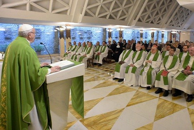 Būt par sāli un gaismu citiem, nepiešķirot nopelnus sev. Tā, saskaņā ar Franciska vārdiem, ir “vienkāršā ierastā liecība”, “visu dienu svētums”, uz kuru tiek aicināts kristietis. Viscēlākā kristieša liecība ir atdot dzīvību par citiem, kā to darīja Jēzus. Tā ir moceklība. Bet ir arī cita veida liecība, tā, kura sākas katru rītu, kad pieceļamies, un noslēdzas vakarā, kad ejam gulēt. “Šķiet, tas nav daudz, bet Kungs ar mūsu mazajām lietām dara brīnumus, Viņš dara brīnumus,” teica pāvests. Tāpēc ir vajadzīga pazemīga attieksme, kas sastāv vienīgi no tā, ka cenšamies būt par sāli un gaismu citiem: “Sāls citiem, gaisma citiem, jo sāls nepiešķir garšu sev, bet vienmēr kalpo citiem. Arī gaisma neapgaismo sevi, bet kalpo citiem. Sāls nevajag daudz, tikai mazlietiņ vien, lai ēdiens kļūtu garšīgs. Veikalā sāli nepārdod tonnām, bet nelielos iepakojumos un ar to pietiek.” Būt kristietim katru dienu, nozīmē būt par gaismu citiem, palīdzēt citiem tumsības brīžos. Kungs mums saka: “Tu esi sāls. Tu esi gaisma.” “Ak tā, nu tad piesaistīšu Baznīcai cik iespējams daudz cilvēku!” Nē, tev ir jādara tā, lai citi redz un godina Tēvu. Tev par to netiks piešķirts neviens nopelns. Kad mēs ēdam, nesakām: “O, sāls gan ir laba!” Nē! Mēs sakām, “šis ēdiens ir garšīgs, šī gaļa ir garšīga utt.” Vakarā, kad ejam mājās, nesakām “šī gaisma ir laba”. Mēs to ignorējam, bet dzīvojam ar gaismu, kas mūs apgaismo. Tāda ir dimensija, kurā kristiešu dzīve paliek anonīma.” “Mēs neesam savu nopelnu varoņi,” uzsvēra pāvests. Viņš aicināja nedarīt tā kā farizejs, kurš pateicas Kungam, domājot, ka ir svēts. Francisks aicināja dienas beigās lūgties, uzdodot sev sekojošus jautājumus: “Vai šodien esmu bijis, bijusi par sāli? Vai esmu bijis, bijusi par gaismu?” Svētais tēvs norādīja, ka tas ir visu dienu svētums, un novēlēja, lai Kungs palīdz to saprast. Radiovaticana.va |