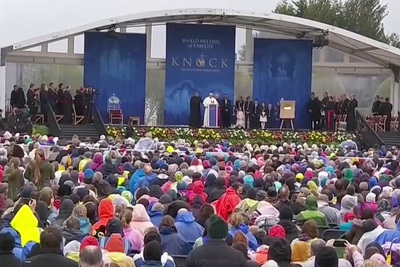 Svētdienas, 26. augusta, rītā Francisks ieradās Īrijas garīgajā centrā – Nokas sanktuārijā. Katru gadu to apmeklē 1,5 miljoni svētceļnieku. Netālu atrodas vēl viena īru tautai dārga vieta – svētā Patrika kalns. Īrijas apustulis tur gavēja un lūdzās par Zaļās salas iedzīvotāju atgriešanos. 1879. gadā Nokā norisinājās neparasti notikumi, stāsta viens no sanktuārijā strādājošajiem priesteriem. Divdesmit cilvēki aptuveni divas stundas vīzijā redzēja Dieva Jēru, Jaunavu Mariju, svēto Jāzepu, svēto apustuli Jāni un eņģeļus. Šī parādīšanās norisinājās laikā, kad Īrija lēnām cēlās no vislielākās traģēdijas savā vēsturē, no bada un nabadzības posta. Tā bija cerības zīme izmocītajai tautai. Baznīca atzina parādīšanās autentiskumu. Šodien Nokas mariāniskais sanktuārijs ir kļuvis par mierinājuma un miera vietu, saka priesteris Pariss. Noka pāvestu sagaidīja ar spēcīgu lietu, tādu pašu, kāds bija Dievmātes parādīšanās laikā. Par spīti nelabvēlīgiem laika apstākļiem, sanktuārijā ieradās tūkstošiem ticīgo, lai kopā ar Romas bīskapu lūgtu Vissvētākās Jaunavas Marijas palīdzību. Noka atrodas 178 km attālumā no Dublinas. Uz turieni pāvests lidoja ar lidmašīnu. Lidostā viņu sagaidīja ļaužu pūlis, kas nepievērsa uzmanību lietum. Tam uzmanību nepievērsa arī pāvests, kurš sasveicinājās ar sagaidītājiem, svētīja un jokojās ar izmirkušajiem bērniem. Sanktuārija laukumā pāvests ieradās ar panorāmas automašīnu. Viņu priecīgi sveica jauni un veci, ģimenes ar bērniem. Pāvests devās uz Dievmātes parādīšanās kapelu, kur aizdedza sveci, brīdi lūdzās klusumā, un nolika zelta rožukroni. Vēlāk kopā ar ticīgajiem viņš skaitīja lūgšanu „Kunga eņģelis”. 26. augusta priekšpusdienā pāvests atgriezās Dublinā. Nunciatūras mītnē viņš paēda pusdienas un mazliet atpūtās. Pulksten 16 pēc Latvijas laika Francisks ieradās Fēniksa parkā, kur vadīja Pasaules Ģimeņu tikšanās noslēguma Svēto Misi. Vizītes programmā ir paredzēta tikšanās ar bīskapiem. Romā pāvests atgriezīsies svētdienas vēlā vakarā. Vaticannews.va |