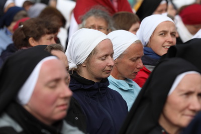 Kad koris uzsāka himnu “Kelk pasauli”, pāvests iegāja Vissvētākā Sakramenta kapelā. Tur viņš lūdzās kopā ar 52 klostermāsām, ko pavadīja tautas mūzikas instrumenta kankles (līdzīgs latviešu koklei) spēle, ko Lietuvā tradicionāli izmanto stundu liturģijā un psalmu dziedāšanā. Dodoties prom no kapelas, pāvestam Franciskam Panevēžas bīskaps un franciskāņu tēvs mons. Linas Vodopjanovs OFM pasniedza dāvanu - dzintara rožukroņa krelles. Tās izgatavojušas Betlēmes māsu monastiskās ģimenes klostera māsas no Lietuvas pilsētas Paparčiai. Pateicoties Svētajam tēvam par šo tikšanos, bīskaps L. Vodopjanovs pieminēja vēsturiski dziļās klosterdzīves saknes Lietuvā un teica: “Mūsdienās mūsu ticība bieži tiek pārbaudīta visādos veidos. Pēc tam, kad reiz esam atsaukušies Dieva aicinājumam, bieži vien mēs vairs nejūtam prieku ne lūgšanā, ne kopienas dzīvē.” Viņš lūdza pāvestu padalīties ar paša dzīvo liecību un iedrošinājuma vārdiem, ticības ceļu ejot. Pāvests pēc tam vadīja responsoriju lūgšanu latīniski, un pēc Bībeles lasījuma par cerību un Dieva mīlestību un kora dziedātās himnas, viņš uzrunāja klātesošos. “Jūs esat mocekļu bērni – dēli un meitas – tas ir jūsu stiprums,” viņš iesāka, atceroties daudzus vietējos priesterus un mūķenes, kas cietuši padomju okupācijas laikā. Pēc tam viņš pievērsās rakstītajam uzrunas tekstam, kas bija sagatavots tieši šim pasākumam un kas veltīts priesteru un konsekrēto aicinājuma tēmai. “Kā īpašas konsekrācijas vīrieši un sievietes, mēs nekad nevaram atļauties zaudēt tos iekšējos vaidus, to sirds nemieru, kas savu atpūtu rod vienīgi Dievā. Nekādas tūlītējas ziņas, nekāda virtuālā komunikācija nevar aizstāt nepieciešamību pēc konkrētiem, ilgstošiem un regulāriem brīžiem, kad esam dialogā ar Kungu – protams, tie pieprasa arī ilgstošu piepūli,” sacīja pāvests. “Sauciens, kas mūs lūgšanā un adorācijā pievērš Dievam, ir tas pats, kas dara mūs sensitīvus, jūtīgus uz mūsu brāļu un māsu lūgumiem. Viņi iegulda mūsos savu ‘cerību’, un viņi pieprasa no mums rūpīgi izšķirt, lai mēs patiesi atbildētu uz Dieva tautas vajadzībām.” Noslēgumā pāvests Francisks visus klātesošos iesaistīja pateicības aktā Dievam par aicinājumiem uz priesterību un konsekrēto dzīvi. Dalībnieki dažādās valodās teica un upurēja savas lūgšanas par visiem bīskapiem, priesteriem, diakoniem un konsekrētajām personām, par semināristiem un klosterbrāļiem un klostermāsām, kuri vēl iziet formāciju, par slimajiem un par jaunajiem ļaudīm. Beigās pāvests deva savu svētību visiem, - gan klātesošajiem, gan tiem, kuri jau devušies prom. D.Bergmane Foto: Laima Penek |