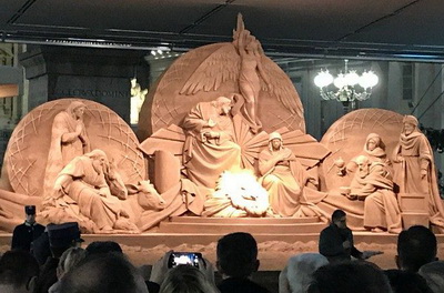 Ceremonijā uzstājās Vatikāna žandarmērijas orķestris, vairāki kori un deju ansamblis. Klātesošos uzrunāja Svētā Krēsla administrācijas prezidents kardināls Džusepe Bertello, Venēcijas patriarhs Frančesko Moralja, kā arī Veneto apgabala un Jesolo pilsētas pārvaldes vadītāji. Jau vēstīts, ka šogad Ziemassvētku notikuma atveidojumam izmantots trausls materiāls – smiltis. Tas ir Nīderlandes, Čehijas un Krievijas mākslinieku divu nedēļu ilga darba rezultāts. Tā tapšanai tika izmantotas Jesolo pludmales smiltis, ko Vatikānam dāvāja Venēcijas patriarhāts. Ziemassvētku notikuma atteidojuma kreisajā pusē redzamos ganus un dzīvniekus veidojis Zuzans Ruselers no Nīderlandes. Centrālā daļa, kurā attēlota Svētā ģimene un eņģelis, ir krievu mākslinieka Iljas Filimontseva roku darbs, bet Radovans Zivnijs no Čehijas veidojis Trīs ķēniņus. Projekta «Sand Nativity 2018» vadītājs Massimo Ambrosins skaidro, ka šis oriģināldarbs tika veikts ar lielu prieku, pacietību un mīlestību. Par to liecina katra, pat vissīkākā detaļa. No smiltīm veidotā «Betlēmes silīte» ir sešus metrus dziļa, piecus metrus augsta un 16 metrus gara. Savukārt vairāk kā divdesmit metrus garā egle ir Konkordijas-Pordenones diecēzes dāvana. Egles zaros mirdz Osram LED spuldzītes. Par Ziemassvētku notikuma atveidojumu un egli mazie un lielie varēs priecāties līdz 2019. gada 13. janvārim – Kunga kristīšanas svētkiem. 31. decembra vakarā viņiem pievienosies arī pāvests Francisks. Vaticannews.va |