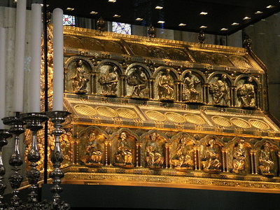 Ne viņu skaits, ne izcelsme, ne atrašanās vieta, ne vārdi nav vēsturiski pierādīti. Pamatojoties uz trim simboliskajām dāvanām – zeltu, vīraku un mirrēm –, vēlāk pieņēma, ka viņi ir trīs. Pēc Isaja izteikuma (60,3), viņi bija ķēniņi, kas staigā pār Viņu uzausušā spožumā. Pēc Ps 72,10 – Taršišas, Šebas un Sebas ķēniņi ar savām veltēm. Skaitlis “trīs” tika skaidrots ar trim cilvēka dzīves posmiem un trim tolaik zināmiem kontinentiem. Sirmais ķēniņš simbolizē veco Eiropu – jau tolaik nojauta šo demogrāfisko attīstību – un jaundzimušajam valdniekam atnes zeltu. Zvaigžņu tulks labākajos vīra gados pārstāv Āziju un dāvina vīraku – Dieva godināšanas simbolu. Jaunākais no magiem reprezentē Āfriku un pasniedz mirres, vienu no mirušo balzamēšanas procesa sastāvdaļām. Viņi ceļoja, izmantojot saviem kontinentiem raksturīgus lopiņus – zirgu, kamieli un ziloni. Ravennā 6. gadsimtā veidotā mozaīkā ir nosaukti viņu vārdi: vecākais ir Kaspars, vidējais – Baltazars un jaunākais – Melhiors. Kad ar krītu rakstām uz durvīm burtus “CMB”, tad tie ir vai nu šo trīs vārdu, vai arī “Christus Mansionem Benedicat” (Kristus svētī šo māju) abreviatūra. Jaunu horizontu atklāšana Viņu dāvanām ir šāds simbolisks skaidrojums: ar zeltu kā visvērtīgāko uz zemes tiek godināts Dieva Dēls, patiesais Ķēniņš. Smaržīgais vīraks ar savu ļaunā atvairītāja spēku norāda uz Bērna dievišķumu. Vērtīgās mirres vēlāk tika sajauktas ar vīnu un piedāvātas Jēzum pie krusta kā narkoze, no kā viņš gan atteicās. Viņa apbedīšanā mirres kalpoja par iebalzamēšanas līdzekli. Trīs zvaigžņu tulki pārstāv visas zemes tautas, svešiniekus, ārzemniekus un pagānus, kas ar ilgām meklē Dievu. Tie devās no Austrumiem, uzlecošās saules zemes, jo viņu sirdis bija atvērtas jauniem, nezināmiem horizontiem. Viņiem bija spēja atpazīt zīmes pie debesīm un sekot savam iekšējam nemieram. Viņi bija spējīgi kā varenie noliekties kaut kā vēl varenāka priekšā, neskatoties uz to, ka tas bija maza, nabadzīga un ievainojama bērna no Betlēmes veidā. No Milānas uz Ķelni Vai nu trīs dižciltīgie svētceļnieki bija vēsturiskas personas, vai nebija, jebkurā gadījumā viņu no paaudzes paaudzē arvien skaistākā leģenda mums māca, meklējot Dievu, uzdrošināties būt atvērtiem jaunajam un uzņemties garu, un nedrošu ceļu. Šķietamās Triju ķēniņu relikvijas pēc leģendas Milānā esot uzglabājusi valdniece Helēna. No turienes tās pārveda kancleram Frīdriham Barbarosam uz Ķelni. Pirmie svētceļnieki pie Jēzus Kristus paši kļuva par svētceļojumu mērķi. Tā kā viņi ceļoja pie jaundzimušā Jēzus, tad ir kļuvuši ceļotāju un svētceļnieku aizbildņiem, sevišķi – dodoties “pēdējā ceļojumā”, mirstot. Foto: Triju ķēniņu relikvijas Ķelnes katedrālē (Commons.wikimedia.org/Welleschik/CC BY-SA 3.0) Tulk.: S.Veita |