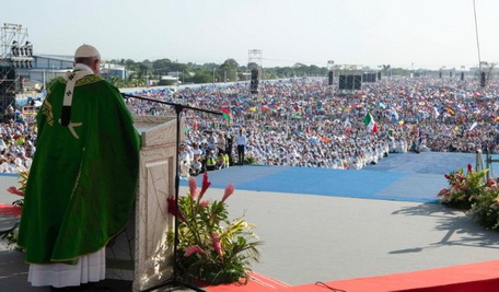 Uzrunā Francisks skaidroja Lūkasa evaņģēlija fragmentu, kas vēstī Jēzu, kas sabata dienā iegāja Nācaretes sinagogā. Visu acis sinagogā raudzījās uz Viņu. Un Viņš tiem sāka runāt: «Šie Raksti, kurus dzirdējāt, šodien ir piepildījušies» – šādā veidā evaņģēlija autors runā par Jēzus publiskās misijas sākumu. Jēzus atnāca uz savu dzimto pilsētu. Sabata dienā Viņš iegāja sinagogā, kur, iespējams, satika arī dažus savus «katehētus», kuri bērnībā Viņam bija mācījuši Likumu. Līdz šim sludinātais vārds attiecās tikai uz nākotni, bet Jēzus saka: «Šodien ir piepildījies». Vārds kļūst realitāte. Tas īstenojas šodien. Jēzus aicina mūs piedalīties Dieva tagad, lai «sludinātu nabagiem Prieka Vēsti, lai vēstītu gūstekņiem brīvību un aklajiem – acu gaismu, palaistu brīvībā apspiestos un pasludinātu Kunga žēlastības gadu». Un tomēr, ne visi Nācaretes iedzīvotāji bija gatavi ticēt kādam, kuru labi pazina. Līdzīgi ir arī ar mums, – atzina pāvests. Arī mēs ne vienmēr ticam, ka Dievs ir tik tuvs, konkrēts un reāls, ka Viņš darbojas caur mūsu kaimiņu, draugu vai tuvinieku. Mēs ne vienmēr ticam, ka Dievs var arī mūs aicināt strādāt kopā ar Viņu un nebaidīties nosmērēt savas rokas. Cik bieži mēs līdzināmies Nācaretes iedzīvotājiem, dodot priekšroku Dievam no attāluma – mīļam, labam, sirsnīgam, bet tālam, tādam, kas mūs netraucē, vai domājot, ka mūsu misija, aicinājums un dzīve ir apsolījums, kas derīgs tikai nākotnē un ka tam nav nekā kopīga ar tagadni. Jaunība nav uzgaidāmā telpa, kurā gaidām pienākam savu laiku, – atgādināja pāvests. Šajā starplaikā nereti izdomājam rūpīgi iepakotu, labu un drošu nākotni, un izliekamies, ka priecājamies par to. Šajā starplaikā mūsu sapņi var zaudēt augstumu un spēku. Tie var kļūt piezemēti tikai tādēļ, ka uzskatām, ka vēl nav pienācis mūsu tagad brīdis, ka mēs esam pārāk jauni, lai iesaistītos nākotnes veidošanā. Francisks uzsvēra, ka jauniešiem veltītās Bīskapu sinodes laikā vairākkārt izskanēja aicinājums ieklausīties un atzīt, ka mēs viens otram esam vajadzīgi, ka tikai kopā varam veidot mieru un labāku nākotni. «Dārgie jaunieši, Dievs jūs aicina dzīvot tagad, aicina iet un darboties šodien, šajā brīdī, nevis rītdien!», uzsvēra pāvests. Viņš sacīja, ka Pasaules Jauniešu dienās kā fona mūzika skanēja Marijas fiat melodija. Meitene no Nācaretes ne tikai ieticēja Dievam un Viņa apsolījumiem, bet arī, sakot «jāvārdu», drosmīgi apliecināja savu gatavību piedalīties Dieva pestīšanas plānā. Uzrunas noslēgumā pāvests pateicās Dievam par Pasaules Jauniešu dienu lielo dāvanu un visiem, kuri piedalījās tās īstenošanā dzīvē. Svētais tēvs sirsnīgi pateicās jauniešiem, kuru ticība un prieks vibrēja ne tikai Panamā, bet arī Centrālamerikā un visā pasaulē. Portugāles galvaspilsēta Lisabona ir nākamo Pasaules Jauniešu dienu norises vieta, Pasaules Jauniešu dienu noslēguma dievkalpojuma laikā paziņoja Laju, ģimenes un dzīvības dikastērija prefekts kardināls Kevins Džoseps Farels. Vaticannews.va Foto: Vatican Media |