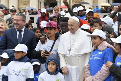 Pasaulē, kurā ļaunā klātbūtne ir ļoti jūtama, mēs, kristieši, no pieredzes droši zinām, ka Jēzus ir mūsu pusē. Caur savu nāvi pie krusta Viņš nopelnīja mums piedošanu un mieru – sacīja Francisks. Iesākoties audiencei, Svētā Pētera laukumā iebrauca balts Džips, kurā šoreiz atradās ne tikai pāvests, bet arī astoņi bērni, kuri pagājušā gada rudenī un šī gada 29. aprīlī "pa humanitāro koridoru" ieradās Itālijā no Lībijas. Šobrīd viņi ar savām ģimenēm ir uzņemti Romas piepilsētā Rokka di Papa, "Mondo Migliore" (Labāka pasaule) centrā. Šie bērni nāk no Sīrijas, Nigērijas, Kongo un citām zemēm, kur plosās bruņotie konflikti. Viņi bija ģērbušies baltos un zilos krekliņos, uz kuriem lasāmas pāvesta Franciska četras norādes attiecībā uz imigrāciju "Pieņemt, aizstāvēt, veicināt un integrēt", bet galvā viņiem bija baltas cepurītes ar uzrakstu latīņu valodā "Auxilium", kas tulkojumā nozīmē "Palīdzība". Skaidrojot pēdējo lūgšanas "Tēvs mūsu" lūgumu, Svētais tēvs norādīja, ka tas, kurš lūdzas, lūdz ne tikai to, lai netiktu pamests kārdināšanas brīdī, bet arī, lai tiktu atbrīvots no ļaunā. Svētais Pēteris savā Pirmajā vēstulē runā par mūsu ienaidnieku velnu, kurš staigā apkārt kā rūcošs lauva, meklēdams, ko aprīt. Apustulis mūs aicina pazemoties zem varenās Dieva rokas un atgādina, ka Viņš rūpējas par mums. Viņš mudina būt stipriem ticībā un pretoties ļaunajam (sal. 1 Pēt 5, 6-9). Skaitot "Tēvs mūsu", mēs lūdzam, lai Dievs mūs atbrīvo no ļaunā. Divi pēdējie lūgumi "neieved mūs kārdināšanā" un "atpestī mūs no ļaunā" atklāj kādu svarīgu kristīgās lūgšanas iezīmi – sacīja Francisks. Jēzus aicina savus draugus griezties pie debesu Tēva īpaši pārbaudījumu brīžos, kad tos piemeklē ļaunā gara draudi. Tas ir pierādījums tam, ka kristīgā lūgšana nav saistīta ar acu pievēršanu uz reālo dzīvi. Kristīgā lūgšana ir "dēlu un meitu lūgšana", bet ne "bērnišķīga lūgšana". Cilvēka dzīves ceļš ir saistīts ar grūtībām, un tas netiek aizmirsts. Ja nebūtu šo divu pēdējo lūgumu, tad kā gan lūgtos grēcinieki, vajātie, izmisušie un mirstošie? – jautāja pāvests. Viņš atzina, ka reizēm liekas, ka ļaunais gūst virsroku. Mūsu dzīvē ir grūtību, izmisuma brīži, kad ļaunā klātbūtne ir skaidrāk saskatāma nekā Dieva žēlsirdības klātbūtne. Tomēr ļaunums nav no Dieva – uzsvēra Francisks. Cilvēks, kurš lūdzas nav akls. Viņš pamana šī ļaunā klātbūtni. Viņš to redz sev visapkārt un pat savā sirdī. Pietiek padomāt par sērām, dažādām sāpēm, paverdzināšanām, otra izmantošanu, nevainīgo bērnu asarām. Visi šie notikumi izraisa cilvēka sirdī protestu, un cilvēks pievienojas pēdējam Jēzus lūgšanas saucienam. Pāvests norādīja, ka daži lūgšanas "Tēvs mūsu" lūgumi visiespaidīgāk atbalsojas tieši Jēzus Ciešanu aprakstos. Ciešanu priekšvakarā Kungs sacīja: "Abba! Tēvs! Tev viss ir iespējams. Attālini no manis šo biķeri! Tomēr lai notiek nevis tas, ko es gribu, bet tas, ko Tu gribi" (Mk 14, 36). Jēzus piedzīvo ļaunuma smagumu. Viņš piedzīvo ne tikai nāvi kā tādu, bet nāvi pie krusta. Viņš piedzīvo ne tikai vientulību, bet arī nievas un pazemojumus. Cilvēks, kurš ir radīts dzīvībai, sapņo par mīlestību un labo, bet tai pat laikā nemitīgi pakļauj ļaunumam sevi un savus līdzcilvēkus – atzina Francisks. Tomēr Jēzus mūs atbrīvoja no ļaunā – viņš uzsvēra. “Un "Tēvs mūsu" lūgšana ir visvērtīgākais mantojums, kādu mums atstāja Jēzus. Caur šo lūgšanu mēs tiekam nostādīti paša Jēzus klātbūtnē.” Noslēdzot cīņu, Jēzus pavēl Pēterim likt zobenu atpakaļ makstī, nožēlas pārņemtajam laupītājam apsola paradīzi un visiem, kuri atradās Viņam līdzās, bet neapzinājās notiekošā traģiskumu, dāvā mierinājumu: "Tēvs, piedod viņiem, jo viņi nezina, ko dara" (Lk 23, 34). Jēzus krusts ir piedošanas un miera avots. Augšāmcēlušais Jēzus dāvā mums mieru. Pirmie vārdi, ko Jēzus sacīja tūlīt pēc augšāmcelšanās, bija: "Miers jums". Kungs novēl mieru mūsu dvēselei, mūsu sirdij, mūsu dzīvei. "Kungs dāvā mums mieru, Viņš dāvā mums piedošanu, bet mums ir jālūdz 'atbrīvot mūs no ļaunā', lai neiekristu ļaunumā", uzsvēra pāvests. Tā ir mūsu cerība. Tas ir spēks, ko mums dod Jēzus. Viņš ir šeit, mūsu vidū. Viņš mums dod spēku, lai mēs varētu iet uz priekšu, un apsola atbrīvot mūs no ļaunā. Sveicot franču valodā runājošos svētceļniekus, pāvests aicināja pieņemt šo sirdsmiera dāvanu, ko mums dāvā augšāmcēlušais Jēzus. Šī dāvana ir stiprāka par ļauno – viņš atgādināja. Portugāliski runājošajiem ticīgajiem Svētais tēvs atgādināja, ka maijs ir Dievmātei veltīts mēnesis, un mudināja katru dienu lūgties Rožukroni, tādējādi veltot Dievam vismaz minimumu sava laika, ko mums pienākas Viņam veltīt. "Tādā veidā mēs pietuvināsim cilvēkiem debesis. Esiet visiem Dieva svētība!" viņš sacīja. Tā kā 13. maijā Baznīca atzīmēja Dievmātes pirmo parādīšanos Fatimā, poļu svētceļniekiem Francisks atgādināja par šajā dienā pret sv. Jāni Pāvilu veikto atentātu un pašas Marijas vārdus. Jānis Pāvils II notikušajā saskatīja īpašu Dievmātes aizsardzību, bet Dievmāte, parādoties Fatimas bērniem, vēstīja, ka ir ieradusies, lai mudinātu cilvēkus mainīt savu dzīvi, lai tie izbeigtu ar saviem smagajiem grēkiem skumdināt Dievu. “Dievmāte mūs aicina skaitīt Rožukroni un gandarīt par grēkiem.” "Ieklausīsimies šajā viņas pamudinājumā", aicināja pāvests Francisks, "un lūgsim Marijas aizsardzību, atgriešanās dāvanu, gandarīšanas garu un mieru visai pasaulei". Vaticannews.va Foto: Vatican Media |