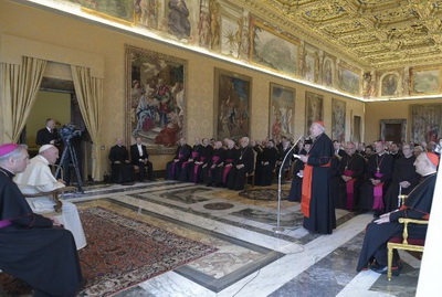 "Kārtējo reizi ar skumjām domāju par dramatisko situāciju Sīrijā," viņš sacīja, "un par biezajiem mākoņiem, kas, šķiet, pār to savelkas dažās zonās, kurās vēl pietrūkst stabilitātes un kur joprojām saglabājas augsts vēl lielākas humanitārās krīzes risks. Tie, kuriem nav pārtikas, medicīnisko līdzekļu, kuriem nav skolas, kuri ir bāreņi, kuri ir ievainoti, atraitnes paceļ uz augšu savas balsis. Ja cilvēku sirdis ir nejūtīgas, tad Dieva sirds tāda nav. Dievs vienmēr jūt līdzi savām radībām un maigi par tām rūpējas. Viņš to dara ar tēva spēku, kurš sargā un vada savus bērnus". Francisks atzina, ka dažreiz viņš domājot arī par Dieva dusmām, kas izlauzīsies pret to valstu vadītājiem, kuri par mieru gan runā, bet tai pašā laikā pārdod ieročus, lai karotu. "Šī liekulība ir grēks," viņš uzsvēra. Uzrunā Svētais tēvs pieminēja Irāku, sakot, ka gribētu to apmeklēt 2020. gadā. Viņš apliecināja, ka nav aizmirsis arī Ukrainu, un novēlēja, lai tās tauta varētu atgūt mieru. Francisks minēja, ka mēģināja palīdzēt mazināt konflikta radīto ievainojumu sāpes ar žēlsirdības iniciatīvu, kurai pievienojās daudzas Baznīcas institūcijas. Uzrunā tika skarta arī Svētā Zeme un migrantu uzņemšanas Eiropā jautājums. Viņš norādīja, ka Eiropa atver savas ostas kuģiem ar moderniem un dārgiem ieročiem, kas iznīcina cilvēkus, nesaudzējot pat bērnus, tai pat laikā tā slēdz savas durvis cilvēkiem, kuri atstāj visu un bēg no konfliktiem. "Tā ir liekulība," viņš vēlreiz uzsvēra. Vaticannews.va |